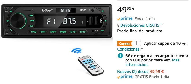 Es cierto que si entras a ver el producto te saldrá que la radio cuesta 50 euros, pero si sigues leyendo un poco más abajo, verás que puedes aplicarle un cupón de descuento del 10%, por lo que la radio te saldrá 5 euros más barata. Es una buena compra para un elemento que seguro que usamos a menudo.