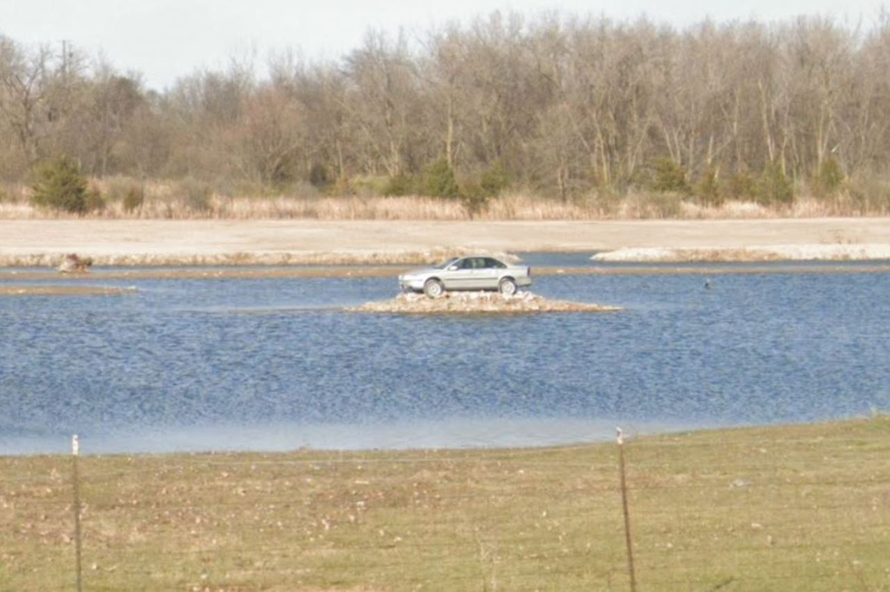 Al parecer, el coche es un viejo Volvo S80 plateado del año 2001 y lleva en esta diminuta isla artificial de tierra y piedra desde 2015, cuando su propietario, Scott Mann, decidió colocarlo en medio de una mina abierta y verter millones de litros de agua para crear este lago improvisado en su propiedad privada, ubicada en Ottawa (Illinois, Estados Unidos), a unos 130 kilómetros de Chicago.
