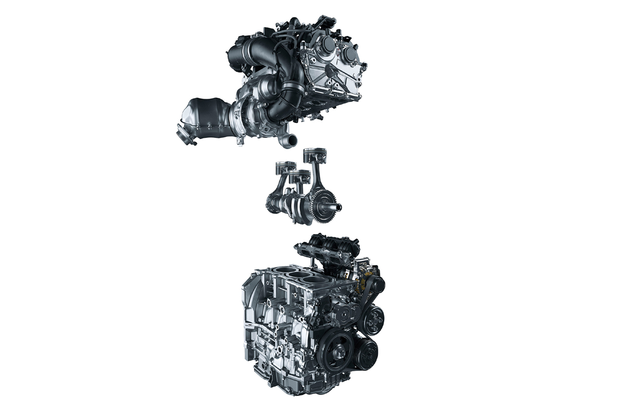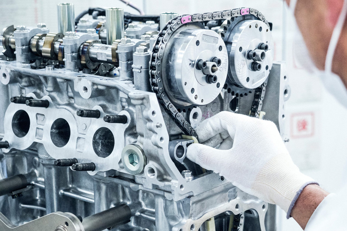Una mecánica que pesa 106 kilogramos. Entre sus características destacan su bloque de tipo 'open deck' de aluminio -al igual que la culata-, su turbocompresor con rodamientos de bolas integrado en el colector de escape, sus válvulas sobredimensionadas, sus conductos de admisión mecanizados para mejorar el flujo de aire o los pistones refrigerados internamente con nueve pulverizadores de aceite.