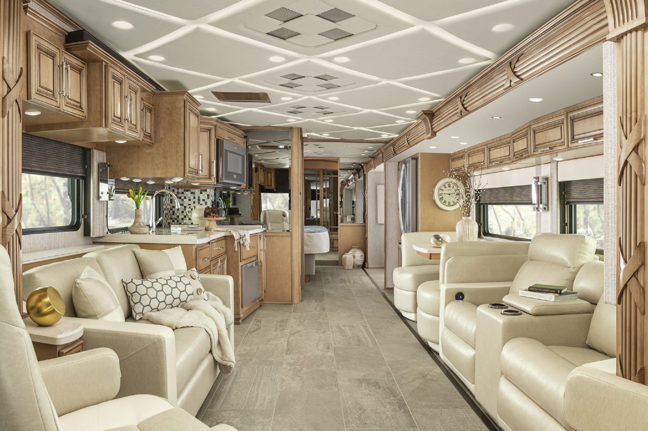 Para quien se le quede corta una autocaravana convencional, siempre puede decantarse por un ‘motorhome’, enormes autocares convertidos en casas sobre ruedas (por norma general de lujo). Newmar es una compañía especializada en este sector y ahora suma el Mountain Aire a su gama, un modelo solo apto para los muy pudientes, ya que su precio de partida es de 680.415 dólares, es decir, casi 580.000 euros al cambio actual.
