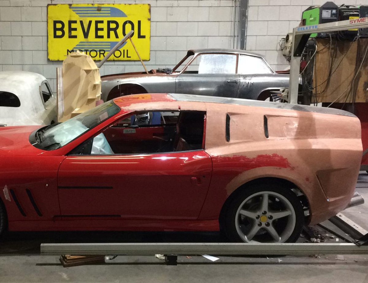 Las fotos que ilustran este artículo muestran el proceso de reconversión de la carrocería del 550 Maranello a un estilo shooting brake que, en base a las últimas imágenes publicadas, habría terminado su proceso de pintura estarían a punto de comenzar la fase de montaje. También se ha trabajado en un interior a medida con tapicería azul oscuro que contrastará con el rojo Ferrari de su carrocería. Las imágenes muestran el proceso de modelaje con arcilla y su conversión a metal, todo un proceso artesanal realizado por un experto.