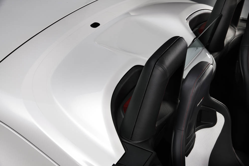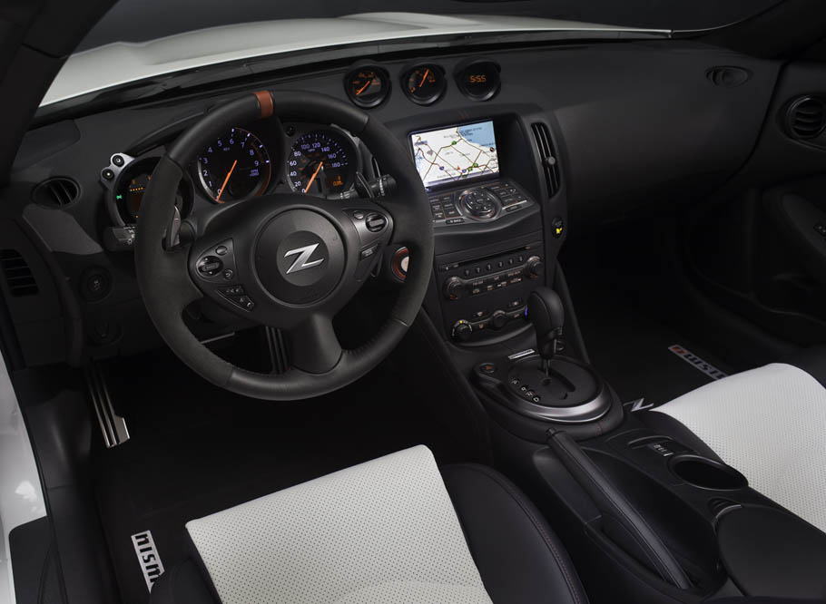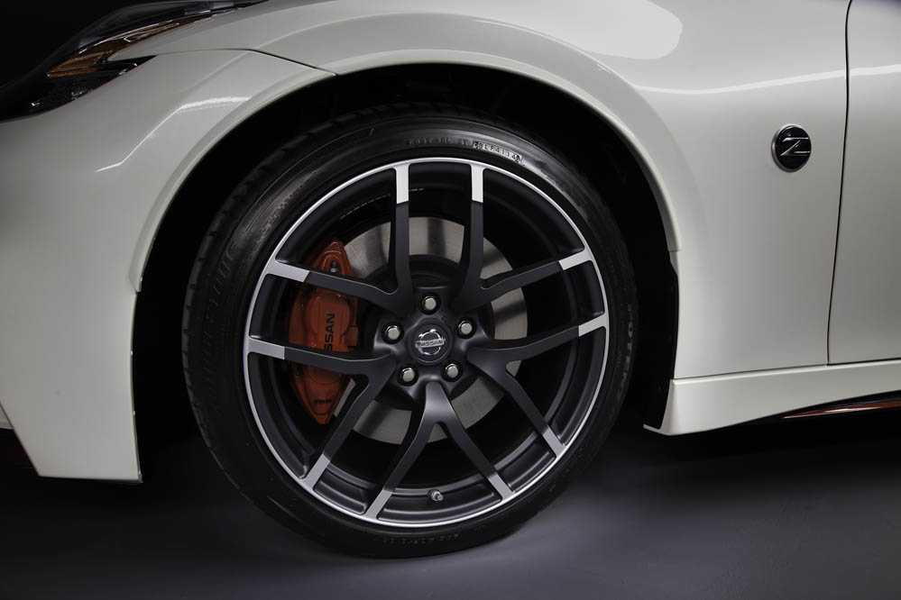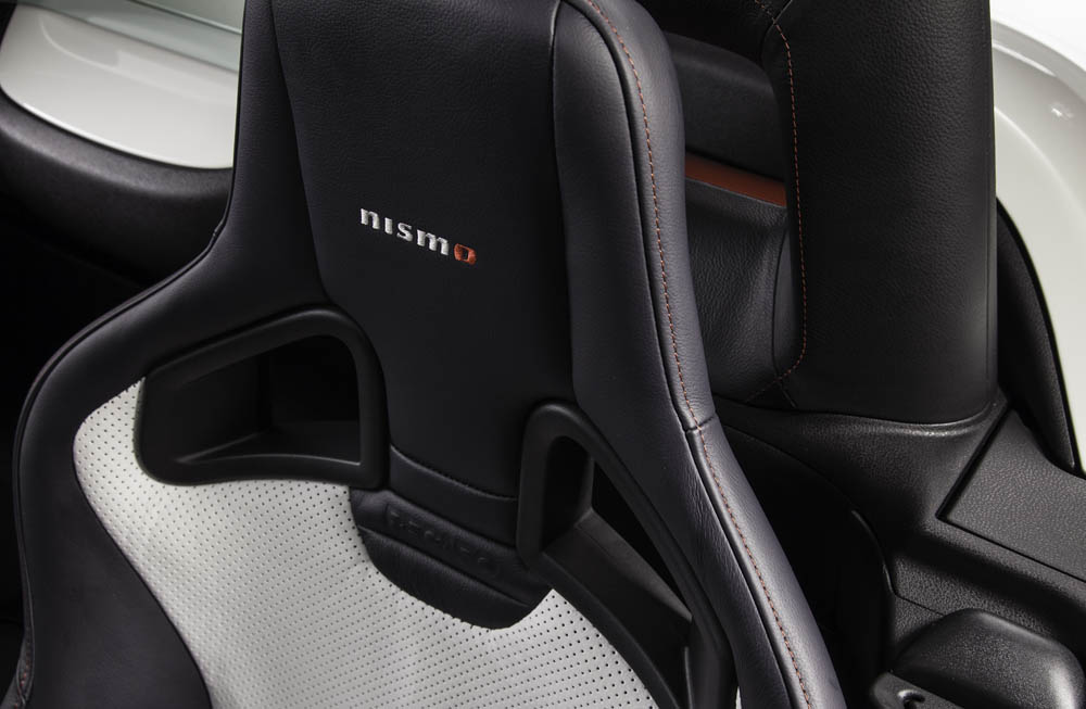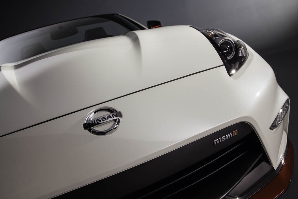 Esta versión con techo de lona guarda gran parecido con el 370Z Nismo: paragolpes, llantas ‘Rays’ de 19x9.5 las delanteras y 19x10.5 las traseras, ambas con neumáticos Bridgestone Potenza S001 (245/40R19 eje anterior y 285/35R19 en el posterior, asientos tipo bacquet firmados por Recaro, detalles en la consola… todo es exacto al coupé; todo menos el alerón posterior, que está realizado en fibra de carbono y que ha sido acoplado para maridar a la perfección con la zaga.