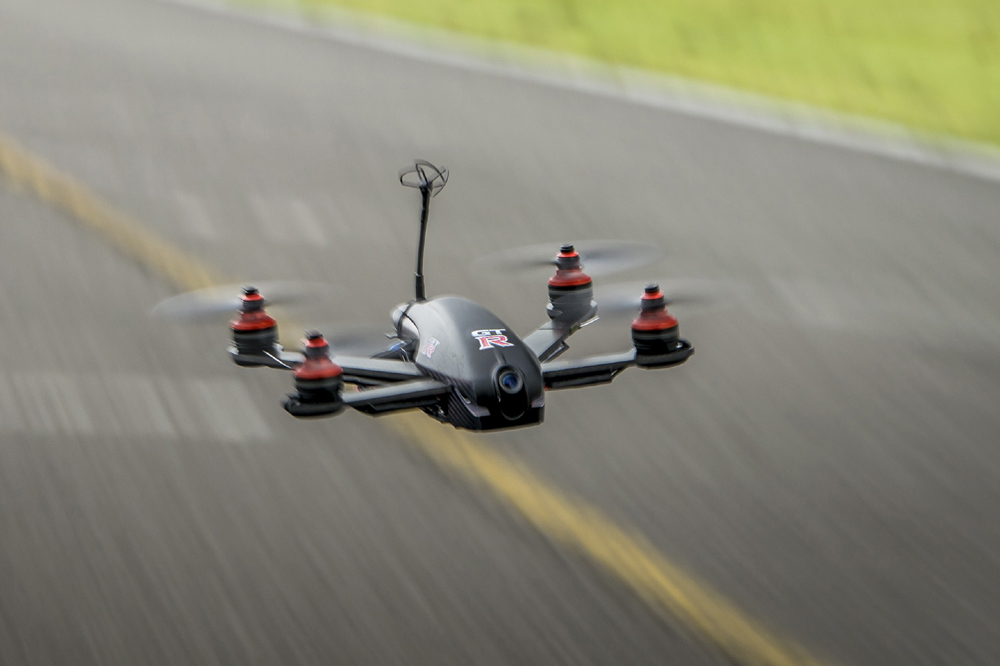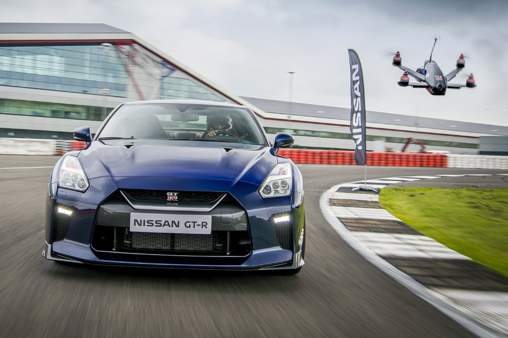 El GT-R Drone de Nissan ha sido creado específicamente para la ocasión. La marca afirma que necesitaban un drone que fuera capaz de seguir a su Nissan GT-R, un coche que es capaz de pulverizar el paso de 0 a 100 km/h en menos de 3 segundos y de alcanzar una velocidad máxima de 315 km/h. Así que por este motivo han creado este liviano vehículo aéreo no tripulado equipado con cuatro motores XNova  de 2000kV y con una batería de polímero de litio con 1.400 mAh de capacidad.