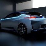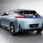 La parrilla delantera del Nissan IDS Concept muestra un diseño muy futurista, con un patrón que hace que se vea transparente, combinando con el exterior terminado en azul satinado. La zaga, por su parte, muestra un lado más deportivo, con un spoiler sobre el techo, las luces traseras con forma de boomerang, aunque el portón trasero se muestra algo pequeño y a la vez poco práctico.