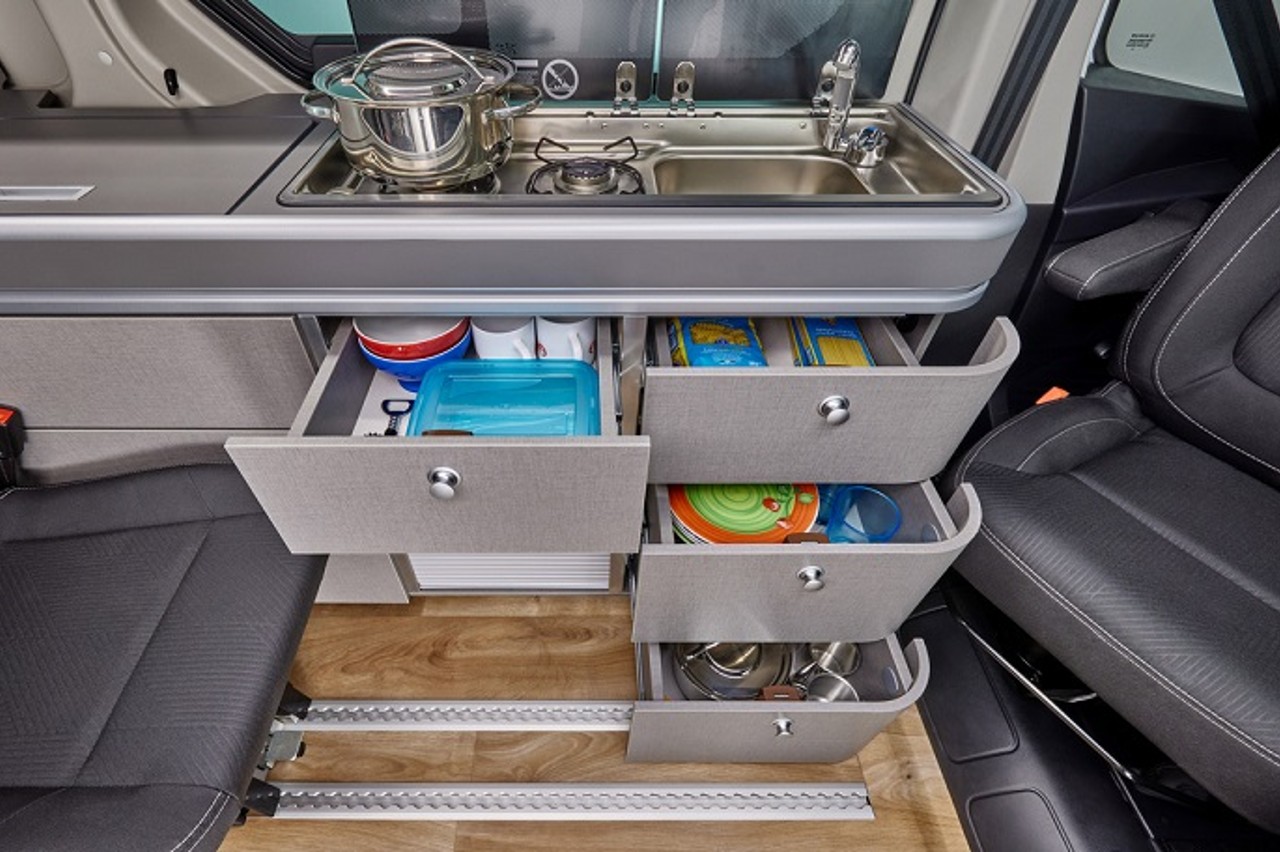 Esta furgoneta camper personalizada está basada en la Nissan Primastar, de la que conserva el diseño original compacto por fuera, pero espacioso por dentro. Igualmente, ofrece una combinación ideal de confort, practicidad y seguridad, lista para afrontar todo tipo de entornos. La Primastar 'Seaside by Dethleffs' ha sido completamente diseñada para llevar la sensación del hogar a la carretera.