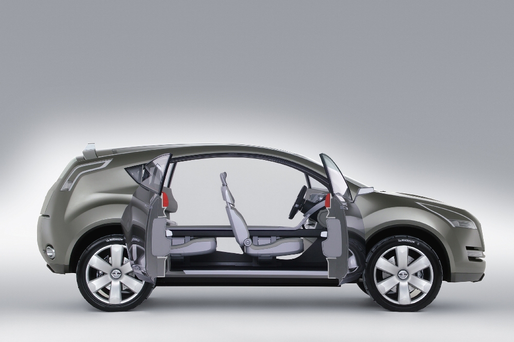 Esta flexibilidad se veía favorecida por las puertas traseras que están articuladas en el borde posterior, lo que permite una apertura más amplia gracias a la ausencia de pilar B. A pesar de la falta de este pilar, la resistencia estructural del Qashqai Concept no se vería comprometida gracias al montaje individual del asiento.