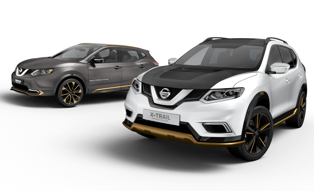 Los Nissan Qashqai y X-Trail Premium Concepts se basan en la última generación del Nissan Qashqai (prueba) y del X-Trail. Y aunque se tratan de modelos diferentes, los colores y los materiales elegidos para los dos guardan un estrecho parecido. El primero ha sido diseñado por el Nissan Design Europe (NDE) con sede en Londres, mientras que el segundo ha sido creado por Nissan Global Design Center (GDC) en Japón.