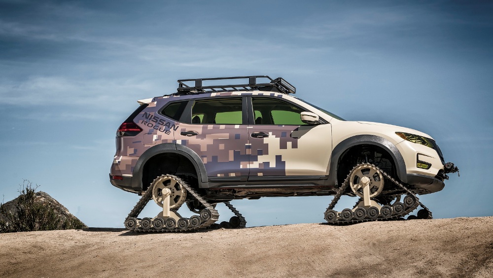 Con anterioridad ya hemos visto este tipo de creaciones en el Nissan X-Trail e incluso en Nissan Juke, por lo que ahora es el momento del Nissan Qashqai (Nissan Rogue en Estados Unidos). Los ingenieros han reemplazado sus ruedas por un conjunto de orugas Dominator Tracks independientes que miden 106 cm de longitud, 76 cm de altura y 38 cm de anchura. Además, se han modificado la suspensión y los pasos de rueda para adaptarse al nuevo sistema de orugas, mientras que le propulsor sigue sin cambios, un 2.5 litros de 170 CV junto a una caja de cambios automática X-Tronic CVT.