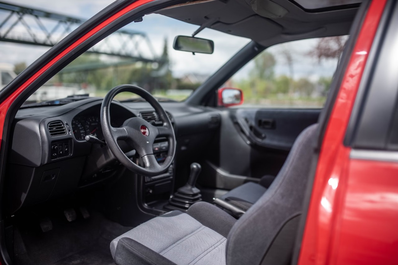 Según el vendedor, el coche tiene apenas 4.472 kilómetros y no ha recibido modificaciones, salvo las llantas OZ Racing de 17 pulgadas con diseño multirradio (aunque se incluyen las llantas originales). Está acabado en Rojo Llama con un interior tapizado en tela gris. El equipamiento incluye elevalunas eléctricos delanteros, techo solar eléctrico original y equipo de música Pioneer.