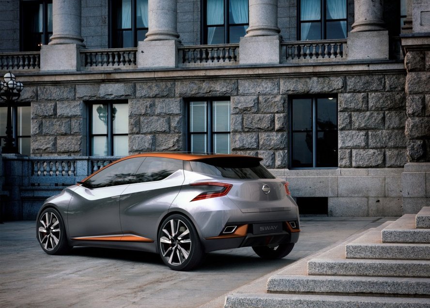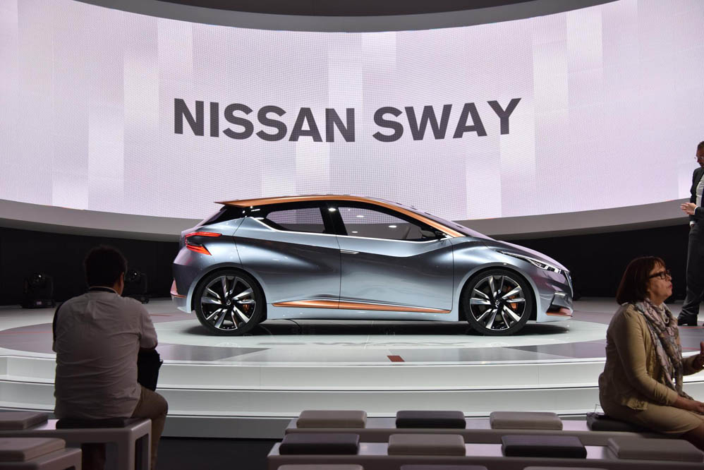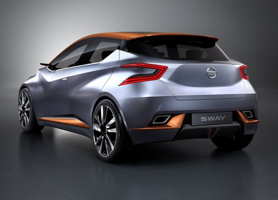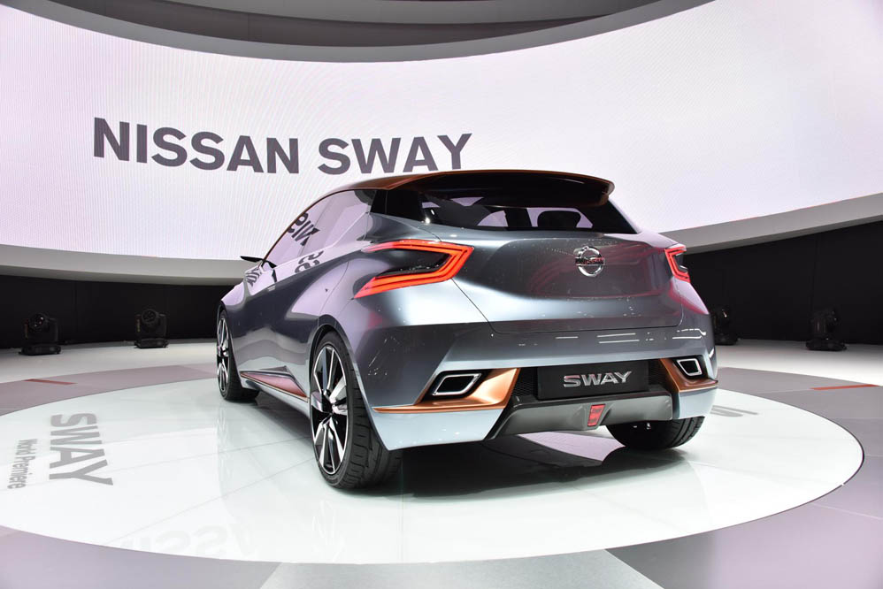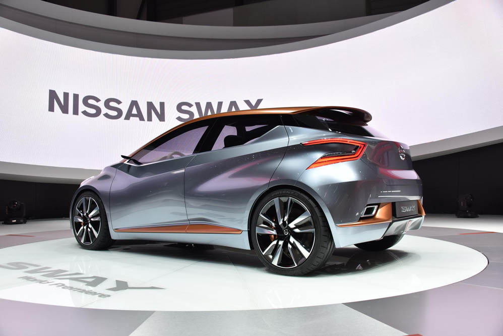 Según Nissan, el Sway Concept está destinado a revolucionar el conservador segmento de los compactos. Su llamativo exterior y su futurístico interior buena señal dan de ello. Sus dimensiones, con 4.010 mm de longitud, 1.780 mm de anchura, 1.385 mm de altura y una distancia entre ejes de 2.570 mm, encajan en las preferencias del Segmento B y un hipotético subsegmento C.