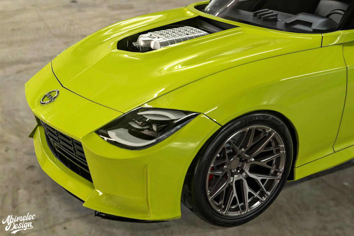El Nissan Z Proto es el concept con el que Nissan ha adelantado el futuro integrante de la gama Z, sucesor del 370Z y que, aunque no hay nombre oficial, debería llamarse 400Z. A tenor de lo visto, el modelo de producción no debería diferir mucho del prototipo, pero si a algún preparador se le ocurre hacer realidad la propuesta de Abimelec Design, tendrá que hacerlo sobre un 400Z de calle, así que técnicamente no sería un Z Proto Hellcat.