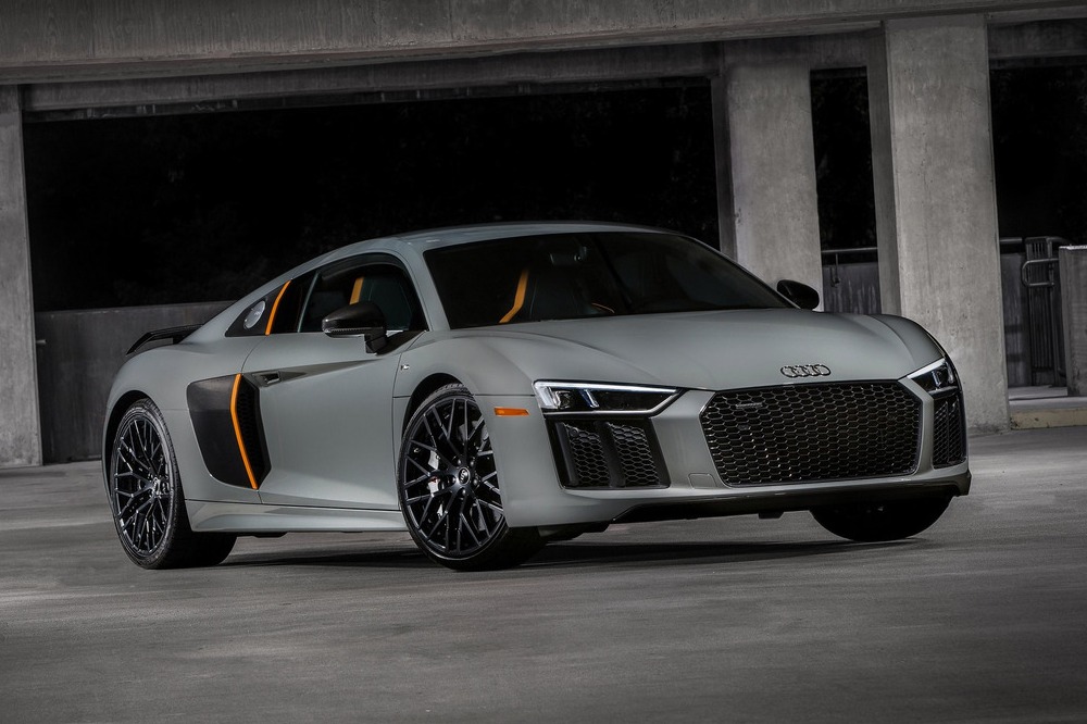 Los faros láser de alta potencia llegan a EEUU de la mano del Audi R8 V10 Plus Exclusive Edition. La ciudad de Los Ángeles será la privilegiada que vea esta tecnología en la unidad que será expuesta en el stand de la compañía alemana. Ésta, que será una de las 25 unidades que se comercialicen, además de estos avanzados faros que ya pudimos probar en el Audi R8 LMX, equipa varios elementos firmados por Audi Exclusive. Multitud de elementos en carbono quedan acoplados en el exterior, que combinan con la pintura Quantum Gray de la carrocería, y en el interior del deportivo, que maridan con el cuero negro y naranja de los asientos. Estas dos tonalidades se distribuyen también por los paneles de las puertas, el volante y las alfombrillas. Asimismo, equipa llantas de aleación de 20 pulgadas en antracita de alto brillo que esconden frenos carbocerámicos.