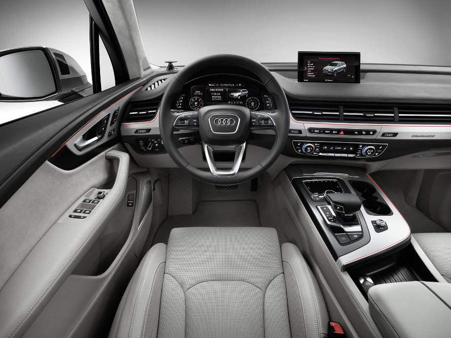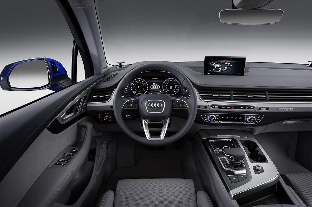 El interior del Audi Q7 se posiciona como el más grande dentro del segmento de los SUV premium. Los componentes del interior están diseñados específicamente para el Q7, como las salidas de aire, más orientadas hacia los ocupantes y buscando la mejor aclimatación del habitáculo, el volante y la pantalla de 7 pulgadas del sistema de infoentretenimiento MMI. Para la iluminación ambiental se emplean LEDs, con posibilidad de elegir entre diversos colores, distribuidos por todo el interior y contorneando el panel de instrumentos y las puertas.