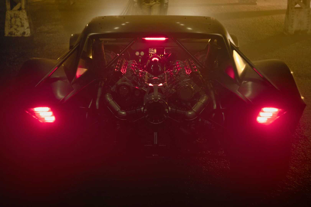 Tiene una estética que parece sacada de ‘Mad Max’ o de una de las películas de ‘A todo gas’. Está pintado en negro mate y presenta una carrocería ensanchada. Pero quizá lo más destacado del nuevo Batmóvil de ‘The Batman’ es su motor, que está colocado en posición central-trasera y a la vista de todo el mundo. No hay detalles concretos, pero a juzgar por las fotos parece un V8 o tal vez un V10.