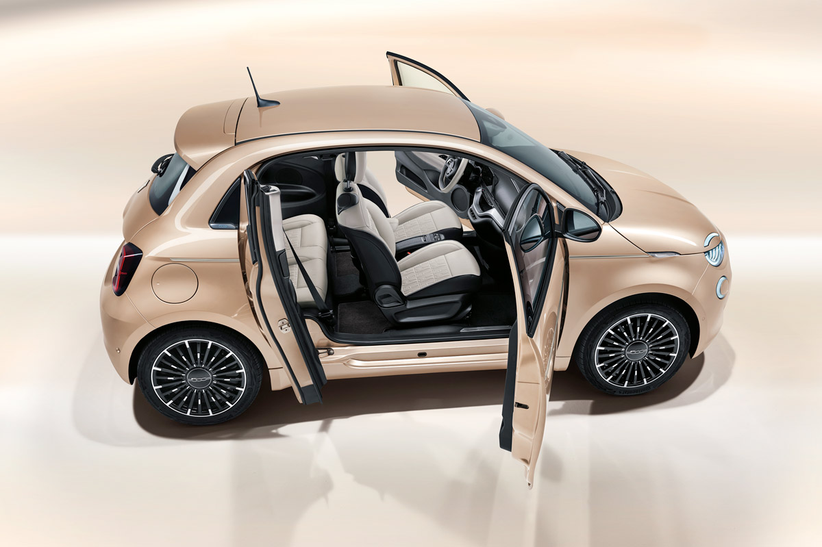 Los ingenieros de la marca se las han ingeniado -valga la redundancia- para aplicar esta tercera puerta sin la necesidad de modificar la de delante, manteniendo intactas sus proporciones. Sin embargo, su presencia provoca que el peso total del utilitario italiano ascienda en 30 kilos, poco pero de suma importancia en un coche eléctrico.
