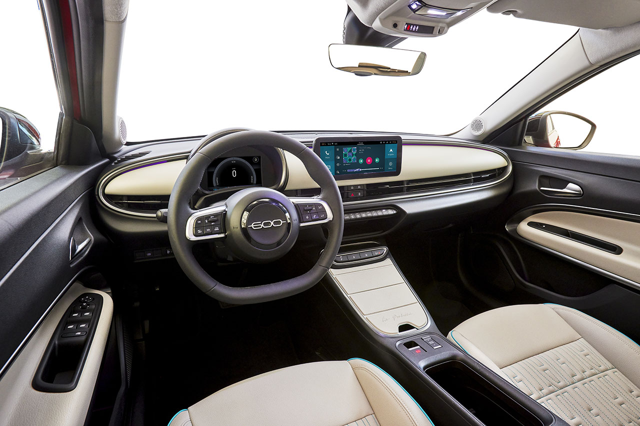 Este nuevo modelo ofrece un generoso tamaño con 4,17 metros de longitud, 5 puertas, capacidad para 5 personas y 15 litros de almacenamiento interior, además de un maletero con 385 litros de capacidad de carga. Se lanzará en dos niveles de acabado: el Fiat 600 Hybrid La Prima, la versión más exclusiva, y el Fiat 600 Hybrid, la versión más accesible.