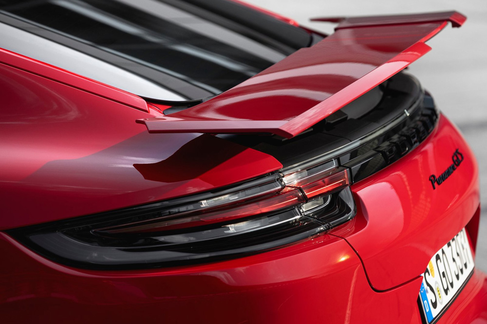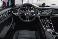 Estéticamente, reconocerás a los nuevos Porsche Panamera GTS y Panamera GTS Sport Turismo gracias al paquete Sport Design que montan de serie, que añade un nuevo frontal en negro, molduras del mismo color en la parte inferior de la trasera y otros muchos elementos en tonos oscuros. A esto hay que sumar que versiones GTS llevan de serie cuatro salidas de escape circulares y unas llantas Panamera Design de 20 pulgadas de diámetro.