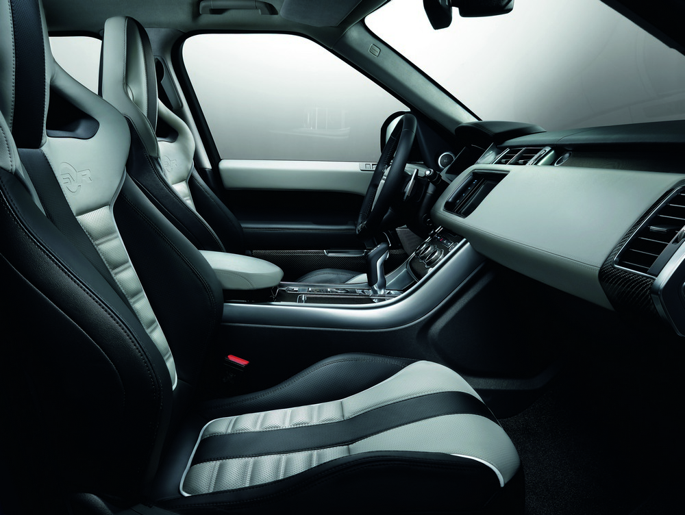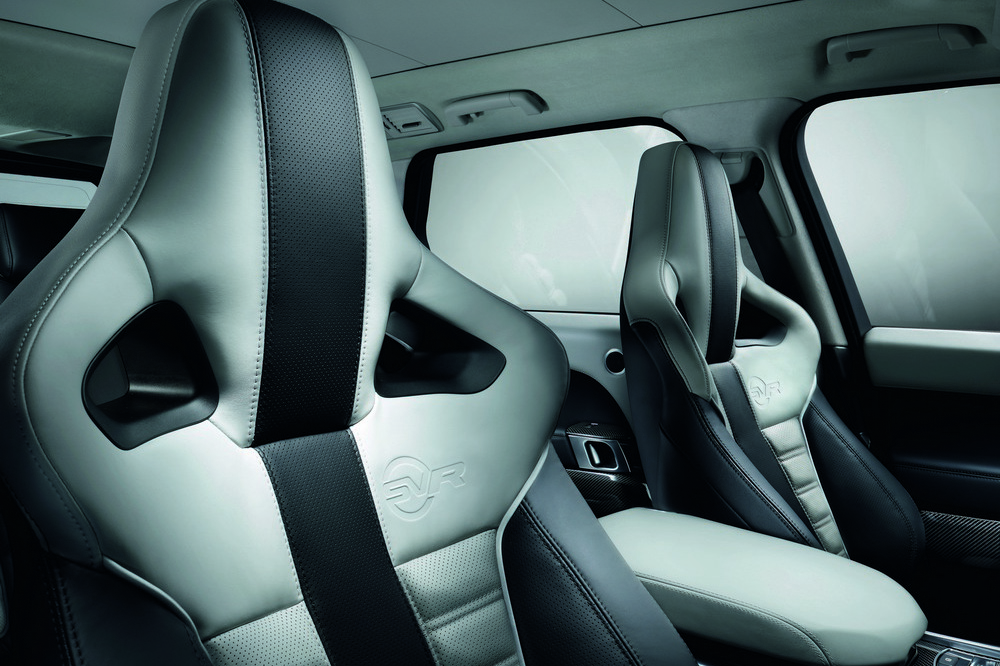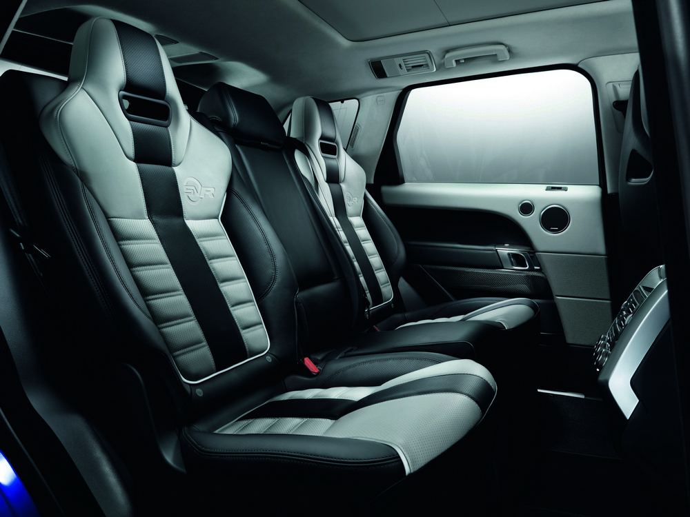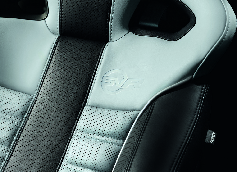 En el interior del nuevo Range Rover Sport SVR destacan los asientos deportivos, que ofrecen mayor sujeción lateral para los ocupantes de la primera y segunda fila de asientos. Estampado en el respaldo de todas las plazas encontramos el logotipo SVR, la denominación que adoptarán los modelos más radicales de la gama de la marca y de Jaguar en el futuro y que estrena por primera vez este todoterreno.