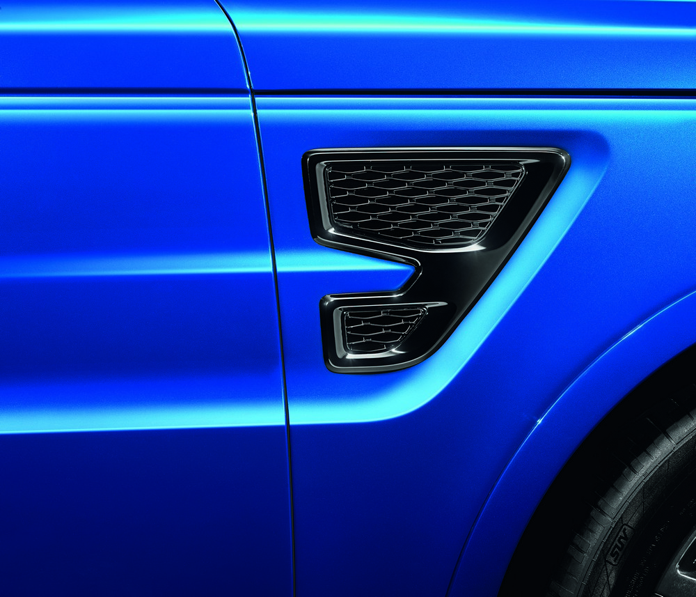 Estéticamente, el nuevo Land Rover Range Rover Sport SVR luce una imagen más radical y agresiva que el modelo base, el Range Rover Sport 2013. El parachoques delantero rediseñado incorpora ahora unas generosas entradas de aire para alimentar a los dos intercoolers, mientras que la parrilla también presenta un nuevo aspecto. En la zaga encontramos un alerón de grandes dimensiones, un difusor y cuatro salidas de escape.