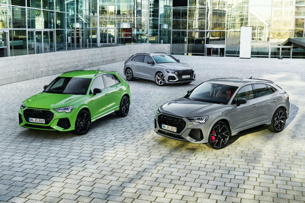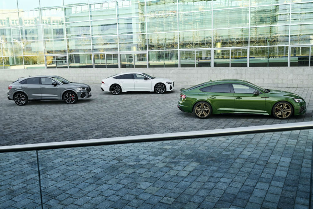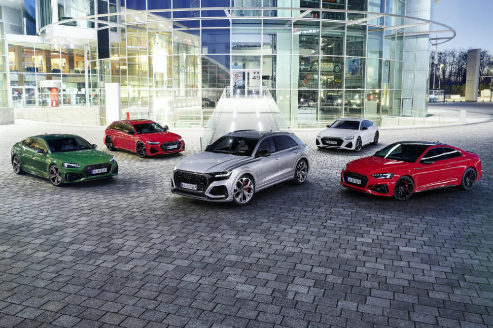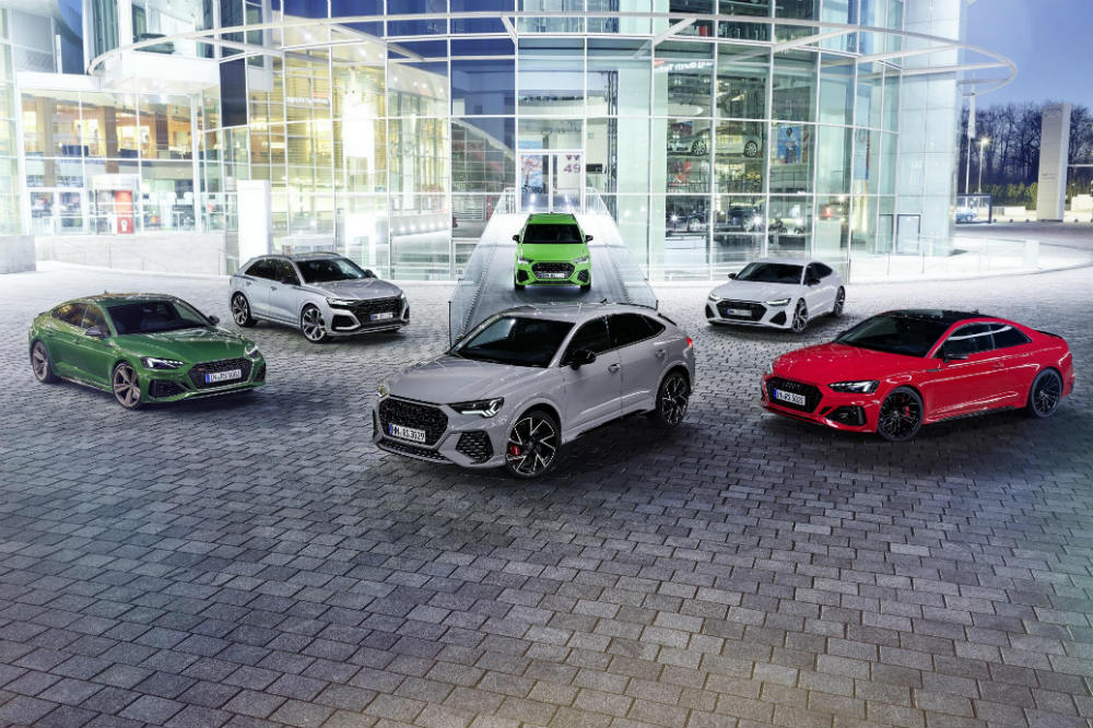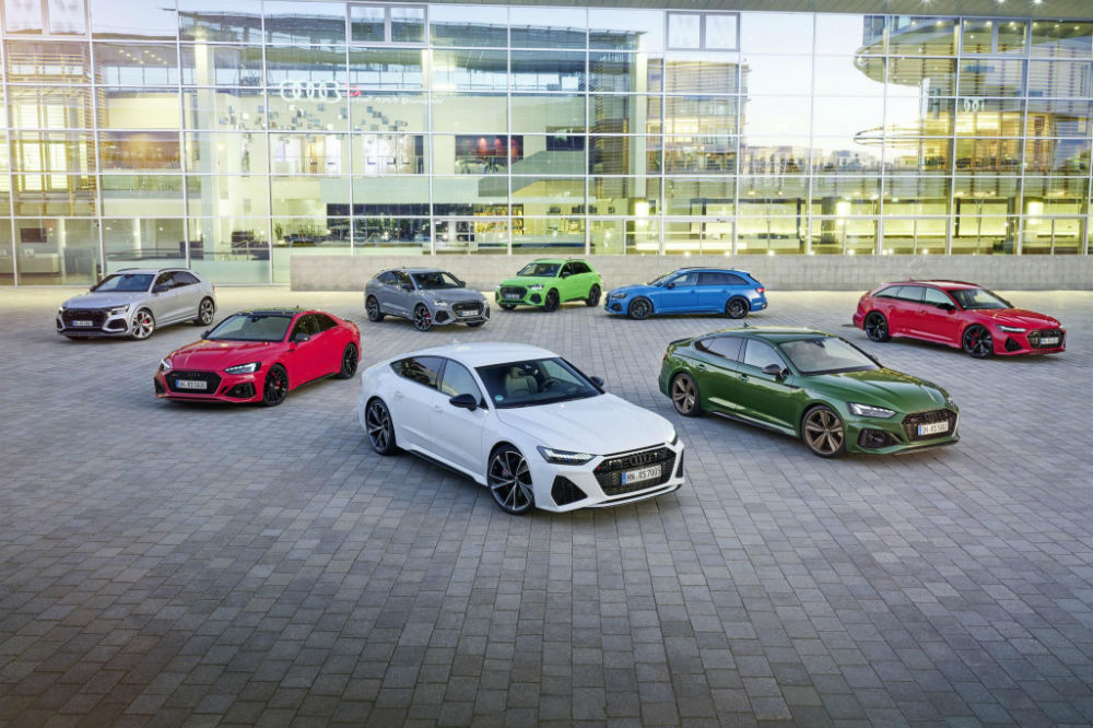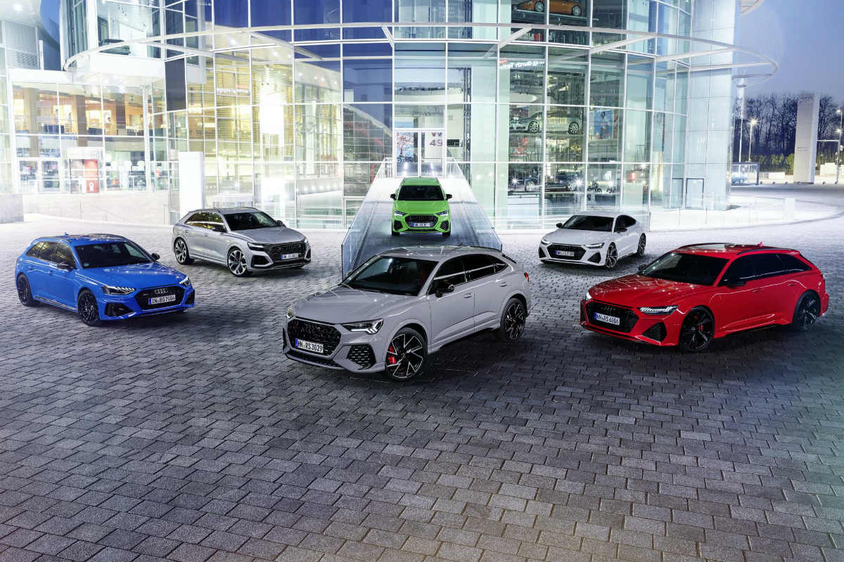 Actualmente la gama Audi RS cuenta con 12 modelos, ocho de los cuales vieron la luz en 2019: RS 3 Sportback y Sedan, RS 4 Avant, RS 5 Coupé y Sportback, RS 6 Avant, RS 7 Sportback, TT RS Coupé y Roadster, RS Q3, RS Q3 Sportback y RS Q8. Su fabricación se reparte entre cuatro fábricas: Ingolstadt, Neckarsulm, Győr y Bratislava.