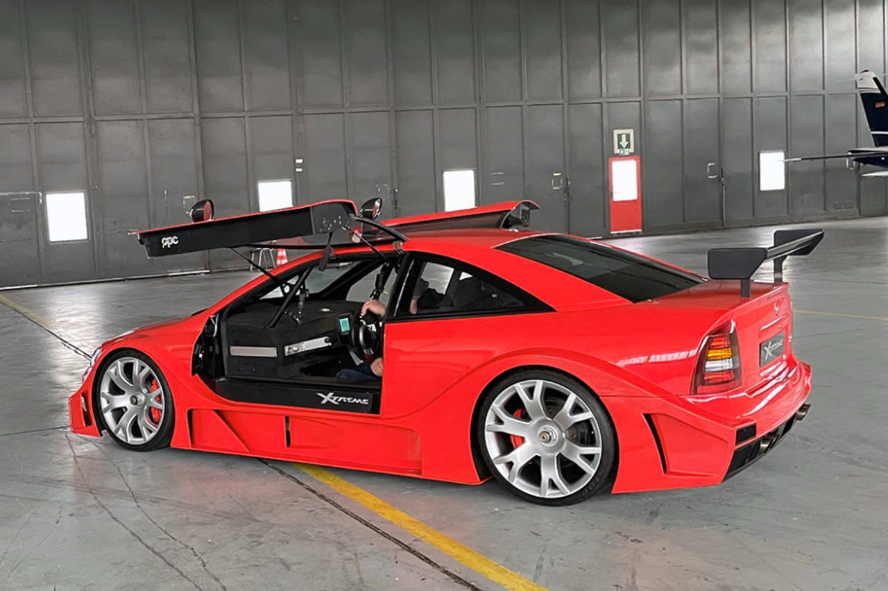 En el taller Classic de Opel en Rüsselsheim, se guarda con mucho cariño una edición muy especial del Opel Astra. Especial, porque nada en él es normal, como sus puertas de alas de gaviota, sus discos de frenos de fibra de carbono, su motor V8 de 4.0 litros y 444 CV colocado sobre el eje trasero o su caja de cambios de carreras. Este es el Opel Astra OPC X-Treme, el Astra más extremo jamás construido. Un coche de carreras para la carretera.