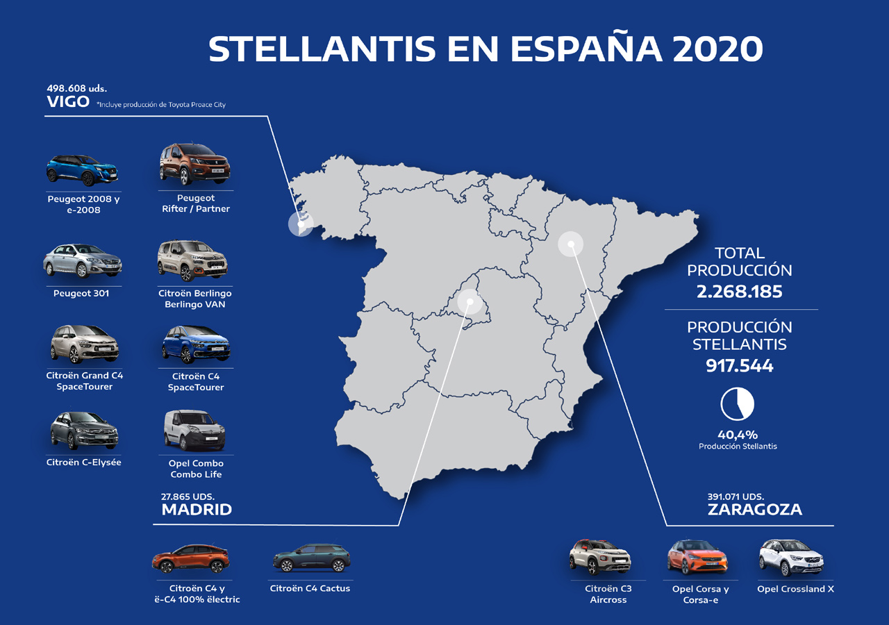 En cuanto al Combo, otro de los coches que Opel fabrica en España, se produce en las instalaciones que el grupo tiene en Vigo. Esta planta es responsable del 54% de los vehículos que Stellantis produjo en España en 2020, con más de 498.000 unidades. El catálogo de coches que se fabrican aquí es muy extenso, pues además de Combo y Combo Life, incluye modelos de Peugeot (2008 y e-2008, Rifter y Partner, además del 301; de Citroën (Berlingo, Grand C4 SpaceTourer, C4 SpaceTourer, C-Elysée); y de Toyota (Proace).