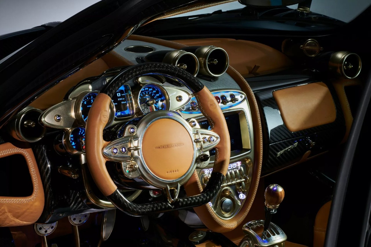 El interior del Pagani Huayra Epitome ha sido personalizado a nivel cromático y de materiales de acuerdo a los gustos de su comprador, pero mantiene la estructura intrincada del deportivo, que es bastante recargada.