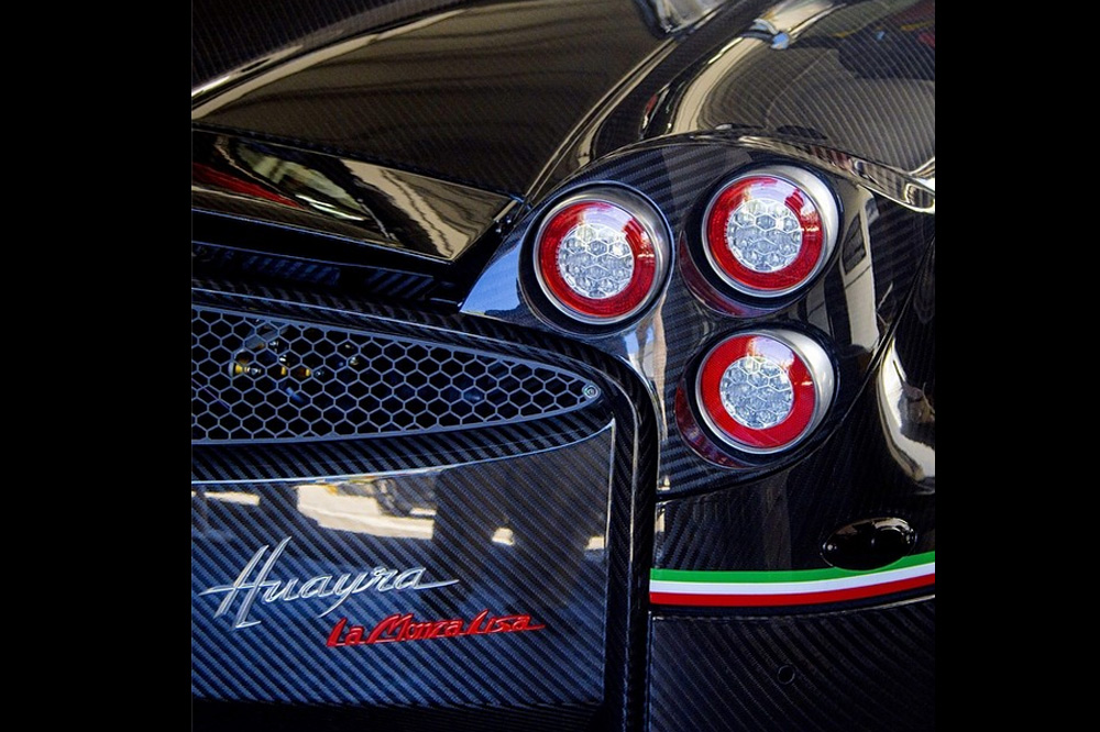 A parte de por el ingenioso nombre, el Huayra ‘La Monza Lisa’ se caracteriza por su carrocería acabada en exquisita fibra de carbono desnuda adornada con los colores de la bandera italiana -similar a la que podemos encontrar en alguna de las unidades fabricadas del Pagani Zonda Revolucion-. Las llantas de aleación tienen un acabado pulido, aunque el propietario también ha adquirido otro juego completo como las que monta el Zonda R pero de color negro.