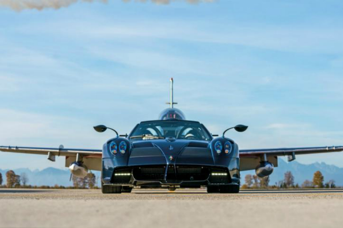 El diseño de la carrocería de este Huayra se ha inspirado en el avión del escuadrón Frecce Tricolori, el Aermacchi MB-339A P.A.N., y el chasis es de carbono y titanio, entre otros materiales. Para esta edición especial se ha elegido el color azul combinado con diferentes gráficos exteriores. Presume de un pronunciado divisor frontal y un paragolpes delantero modificado pensando, siempre, en la aerodinámica. Han añadido una nueva toma de aire para ayudar a refrigerar el motor, un nuevo difusor trasero, un alerón integrado en la cubierta posterior y llantas de aleación con un interesante diseño.