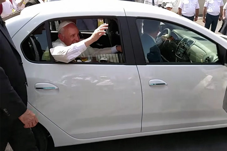 Por todo cristiano y no cristiano es conocida la humildad del Papa Francisco. Jorge Mario Bergoglio no deja de sorprendernos. Atrás quedaron el Mercedes Nürburg de Pio XI, el Mercedes Adenauer de Juan XXIII, el Mercedes 600 de Pablo VI, el Clase G de Juan Pablo II o el Clase M de Benedicto XVI. Si Francisco I se mueve por la Santa Sede en un Ford Focus azul, en sus últimos viajes lo hace en coches que no se caracterizan por su excesivo precio presisamente. Si en Corea utilizó un KIA Soul y en EEUU un Fiat 500X, en Armenia se ha desplazado en un Dacia Logan, un coche que en España tiene un precio de partida de 9.180 euros.