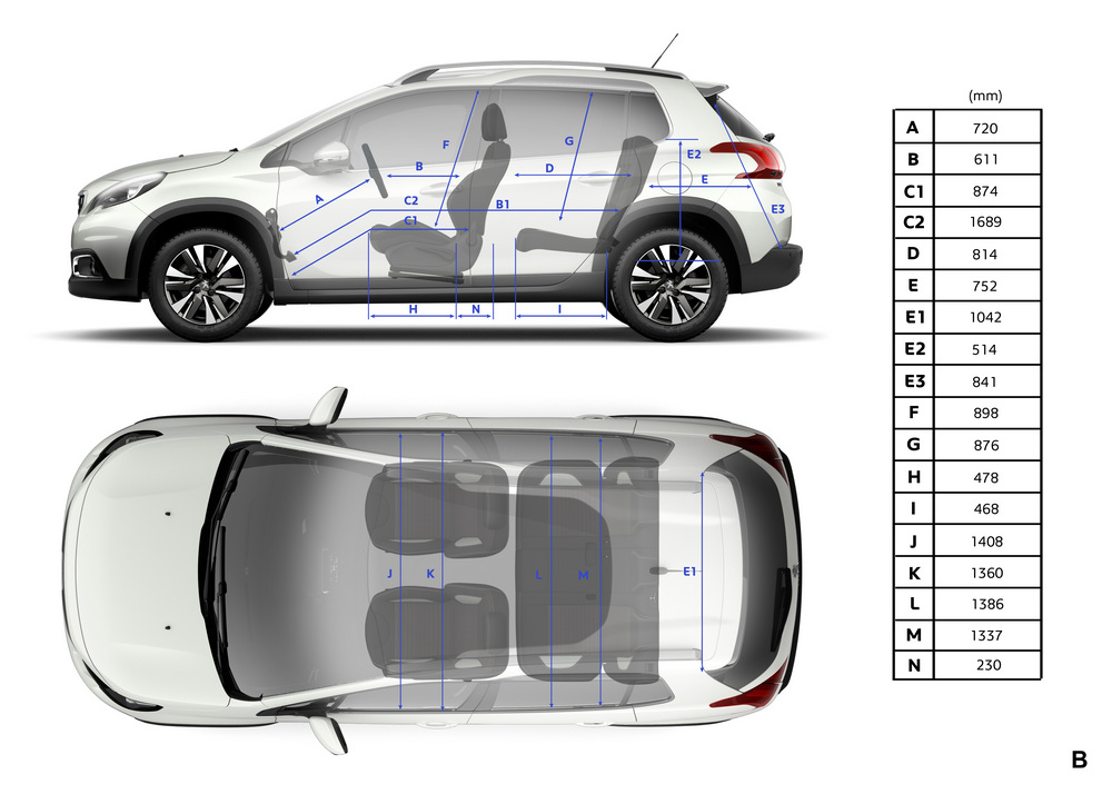 De este forma, el 2008 2016 presenta un frontal en el que encontramos una parrilla de nuevo cuño, que adquiere para la ocasión un aspecto más vertical gracias al diseño de la rejilla. En el lateral, se aprecia la presencia de unos pasos de rueda con protecciones plásticas, lo que unido a las nuevas molduras integradas en la parte inferior tanto del paragolpes delantero como del trasero, le dotan de una imagen más próxima a lo que cabría esperar de un SUV. Los pilotos traseros también son diferentes, aunque mantienen la misma forma que antes.