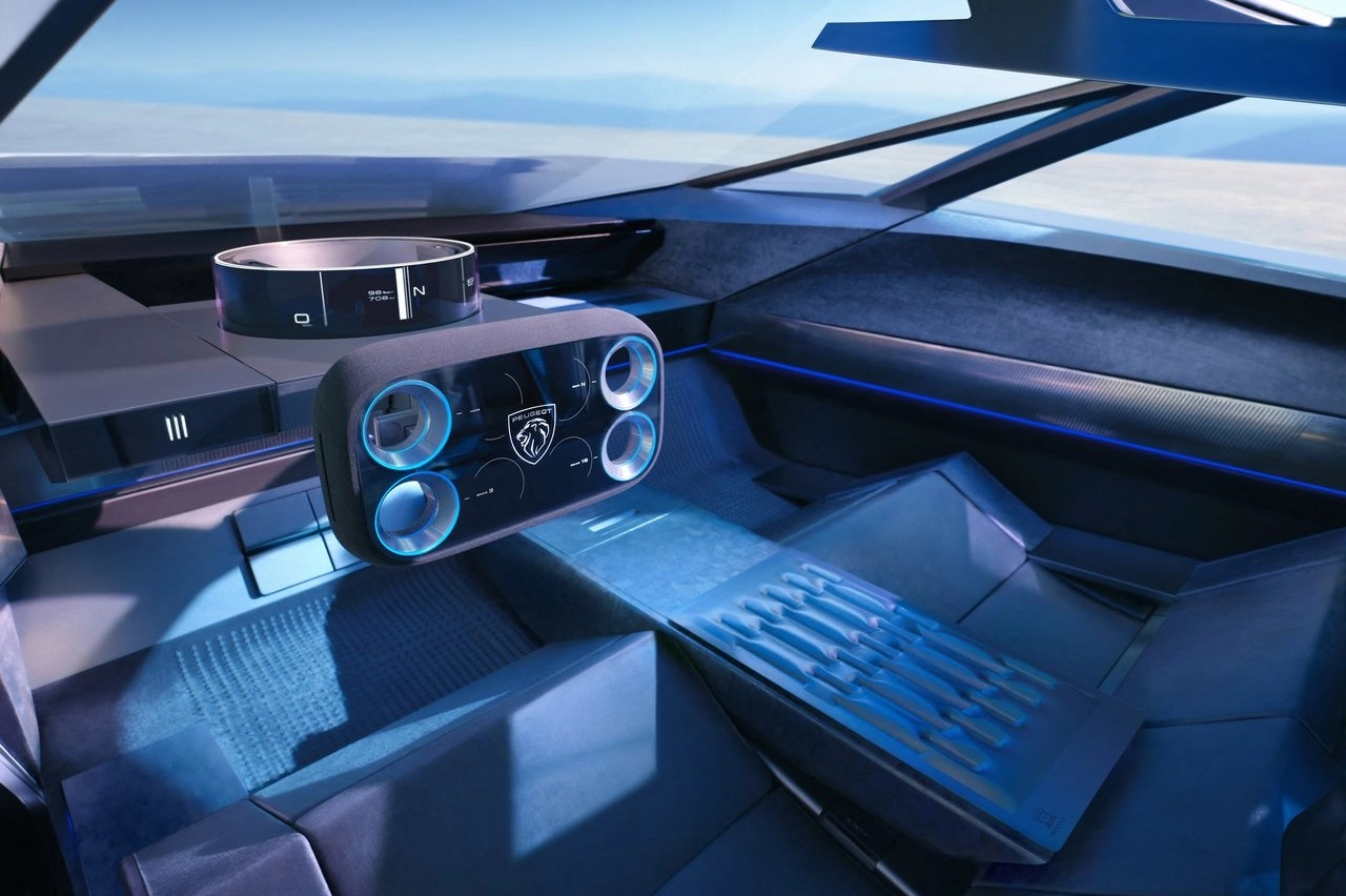 El prototipo eléctrico francés introduce una serie de novedades tecnológicas interesantes, destacando la nueva generación i-Cockpit y su sistema de control Hypersquare, que revoluciona la experiencia de conducción, al ofrecer una nueva forma de conducir más intuitiva: desaparece el volante como lo conocíamos, a favor de un control Hypersquare donde los controles eléctricos digitales han reemplazado a las conexiones mecánicas.