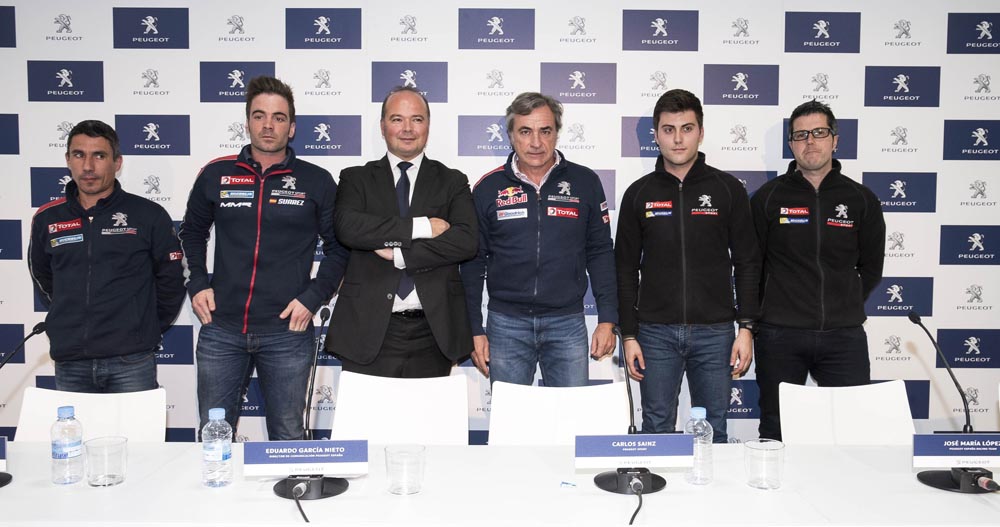 José Antonio ‘Cohete’ Suárez, Pepe López y Carlos Sainz han estado acompañados por Eduardo García, director de Comunicación de Peugeot España; Manuel Aviñó, presidente de la Federación Española de Automovilismo (RFEDA); y por Laurent Guyot, responsable de Peugeot Sport.