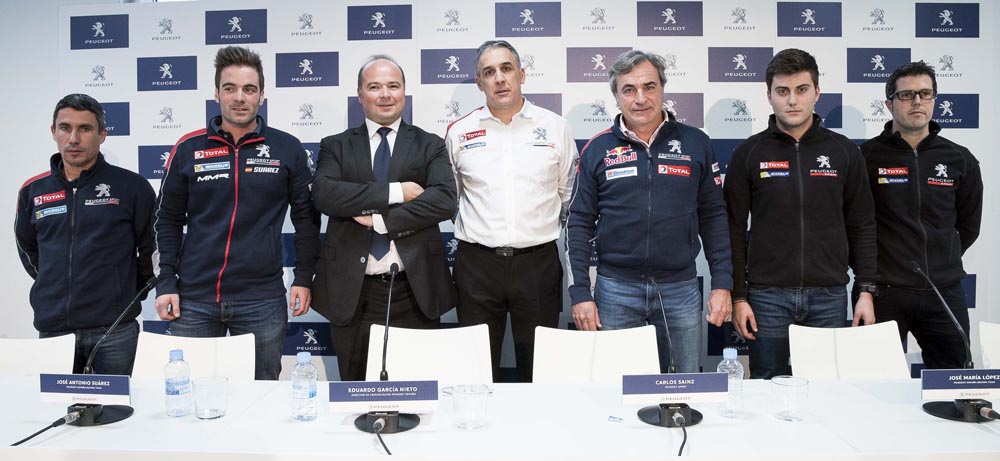 José Antonio ‘Cohete’ Suárez, Pepe López y Carlos Sainz han estado acompañados por Eduardo García, director de Comunicación de Peugeot España; Manuel Aviñó, presidente de la Federación Española de Automovilismo (RFEDA); y por Laurent Guyot, responsable de Peugeot Sport.