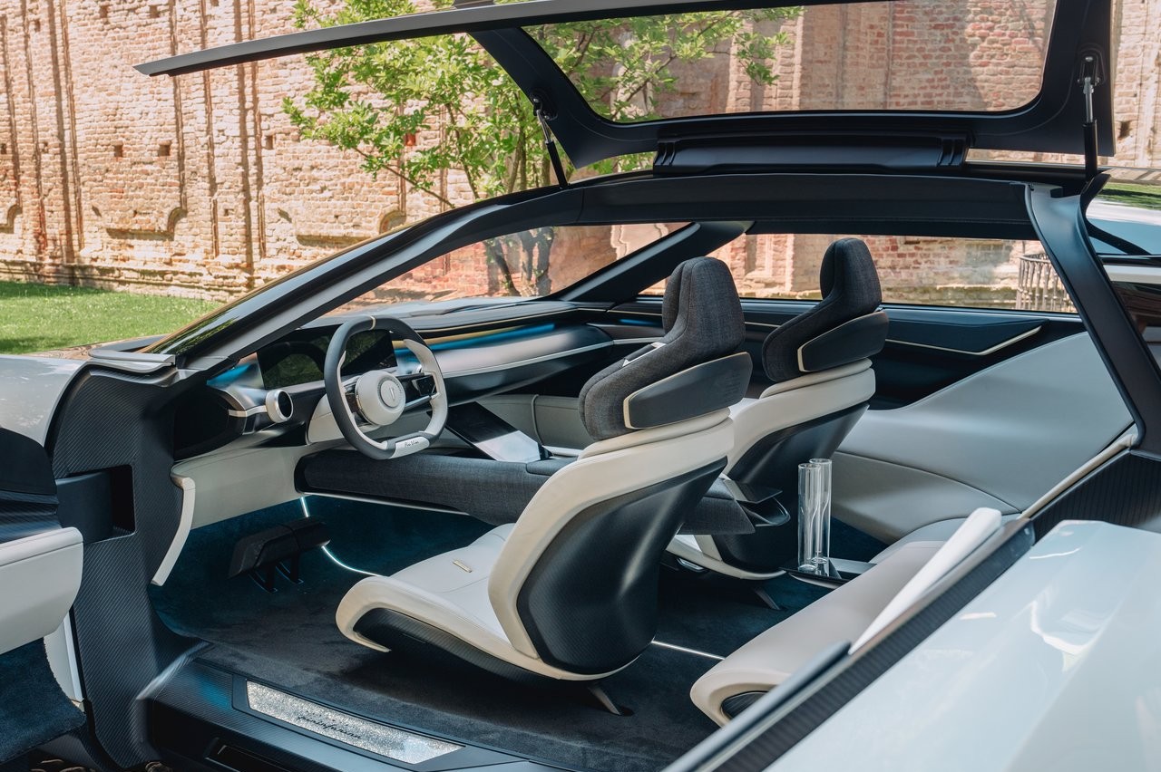 La tapicería de los respaldos de los asientos superiores y el revestimiento del techo es de un 30% de lana y un 70% de poliéster reciclado, que, según la empresa, "cumple las normas de durabilidad de Automobili Pininfarina para vehículos de producción". En el frontal del salpicadero hay una pantalla táctil que se puede ocultar. Otro detalle llamativo es la cantidad de superficie acristalada, gracias a un techo panorámico que deja un habitáculo muy diáfano.