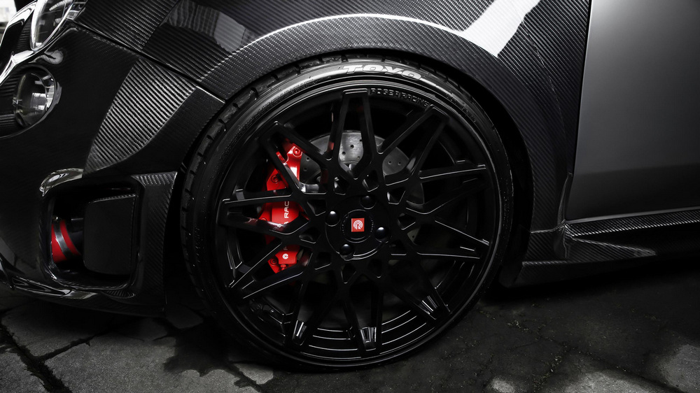 Con todo, consiguen extraer 404 CV de potencia del motor 1.4 que son enviados a las ruedas delanteras a través de una caja de cambios manual de cinco velocidades reforzada para la ocasión y que cuenta con un nuevo embrague más robusto y un radiador de refrigeración adicional. Han optado por un conjunto de muelles y amortiguadores de KW, por unos frenos de disco de alto rendimiento y por unas llantas de aleación ligera de 18 pulgadas calzadas con neumáticos Michelin Pilot Sport.
