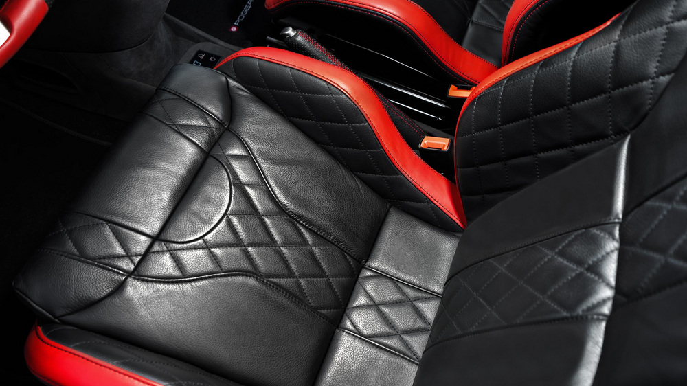 A nivel estético, Pogea Racing ha creado un espectacular kit de carrocería para el Abarth 595 que añade multitud de elementos fabricados en fibra de carbono y que consigue que su imagen sea radical: paragolpes, aletas, capó, retrovisores, alerón… Tras los cambios, el coche aumenta su anchura en 48 mm. Denominado Ares, Pogea pretende producir tan solo cinco ejemplares de esta preparación a razón de 58.500 euros por unidad.