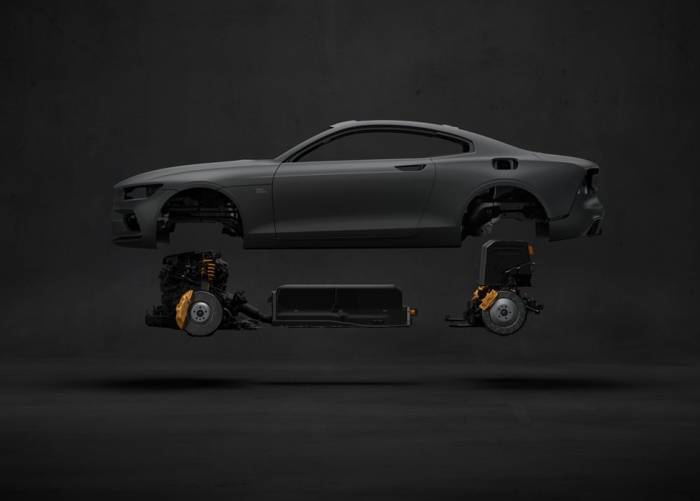 El primer vehículo de producción de Polestar es un coupé de dos puertas que toma como base el Volvo Concept Coupé del año 2013 en lo que respecta a diseño y se basa parcialmente en la plataforma SPA que sustenta la serie de automóviles de la Serie 90 de Volvo y el nuevo Volvo XC60 2017. La mitad de los componentes derivan de la plataforma SPA, mientras que la otra mitad representa un esfuerzo conjunto entre Polestar y Volvo específicamente desarrollado para este nuevo producto.