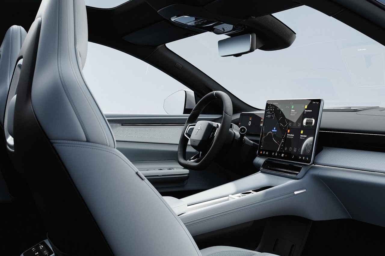 Quizá, la parte que más llama la atención, desde el punto de vista estético, es la ausencia de luneta trasera, que se ha sustituido por un panel que se extiende hasta el techo acristalado, tal y como ocurría en el Precept y los ingenieros de Polestar lo han mantenido en el modelo de producción.