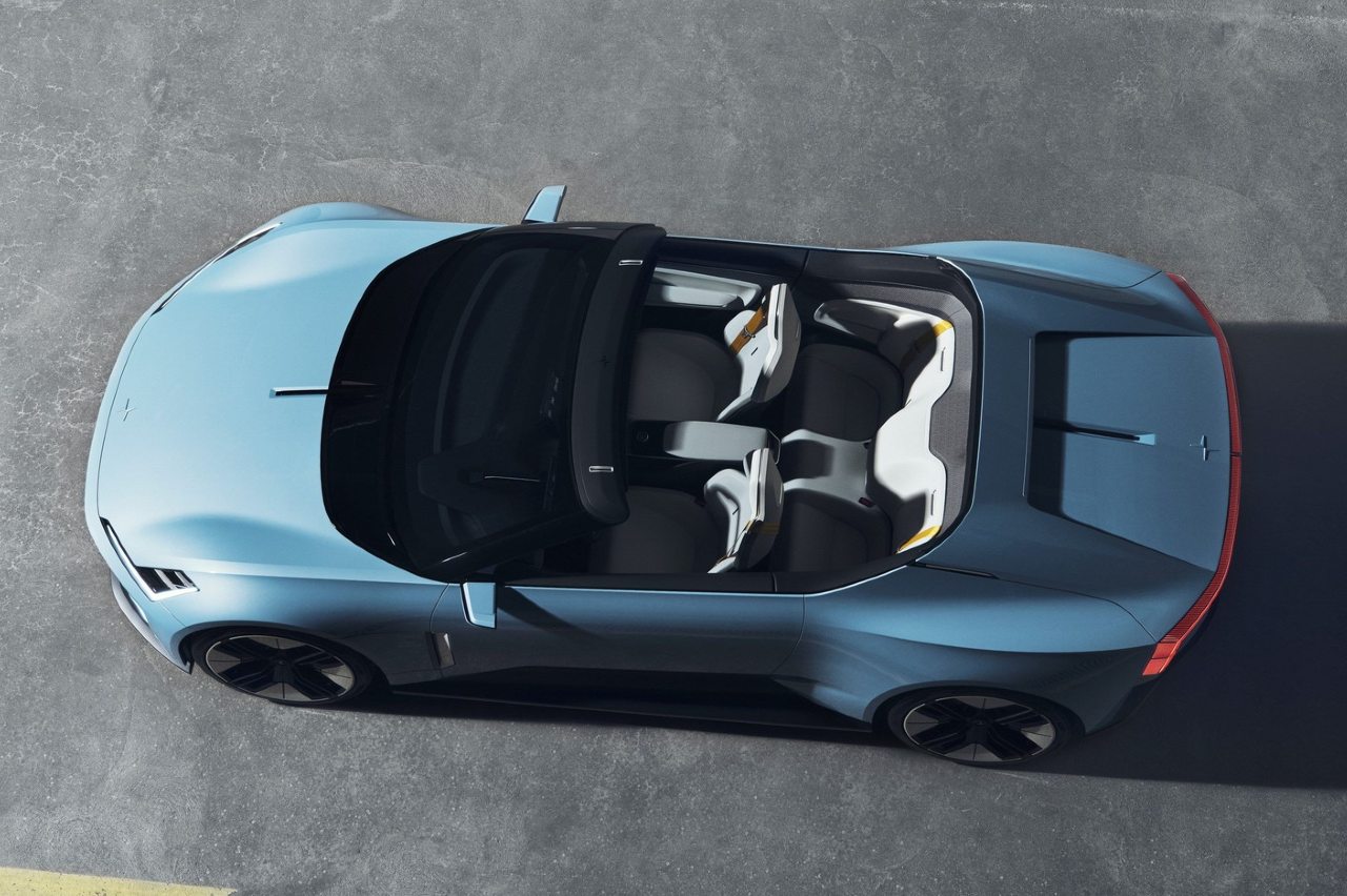 Su diseño puede resultar familiar y es que su base es la del Polestar Precept Concept, que se presentó a principios de 2020, con el que comparte la mayoría de sus rasgos y silueta, con la lógica diferencia del techo abierto del nuevo prototipo y el hecho de que, aunque comparten plataforma, en el O2 se ha recortado hasta conseguir una distancia entre ejes reducida de 2.792 mm.