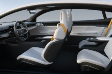 Hablando del habitáculo del Polestar Precept, su distancia entre ejes de 3,1 metros permite acomodar una batería de gran capacidad en el piso, al mismo tiempo que otorga gran amplitud para las piernas y la cabeza en las plazas traseras. Encontramos materiales sostenibles como los compuestos a base de lino para los paneles de las puertas y los respaldos de los asientos, superficies tejidas en 3D con plástico proveniente de botellas recicladas, refuerzos y reposacabezas hechos de vinilo reciclado de corcho y alfombrillas fabricadas con redes de pesca recicladas.