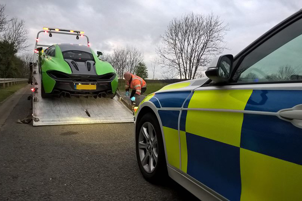 ¿Ves al McLaren 570S, el Lamborghini Aventador y el Ferrari 458 Italia que aparecen en las fotos junto a los BMW Serie 3 ataviados como coches patrulla? Son los tres superdeportivos alquilados que ha embargado la Policía británica por participar en una carrera ilegal en plena autopista, acto que quedó registrado en vídeo (aunque no lo ha hecho público por ahora). Alertados por otros conductores, que llamaron a emergencias para indicar que había tres vehículos de alto rendimiento conduciendo de manera negligente, los agentes procedieron a incautar los superdeportivos tras comprobar las imágenes de las cámaras de la vía.