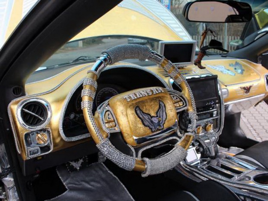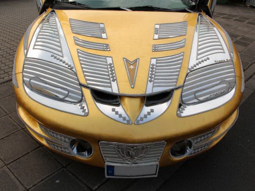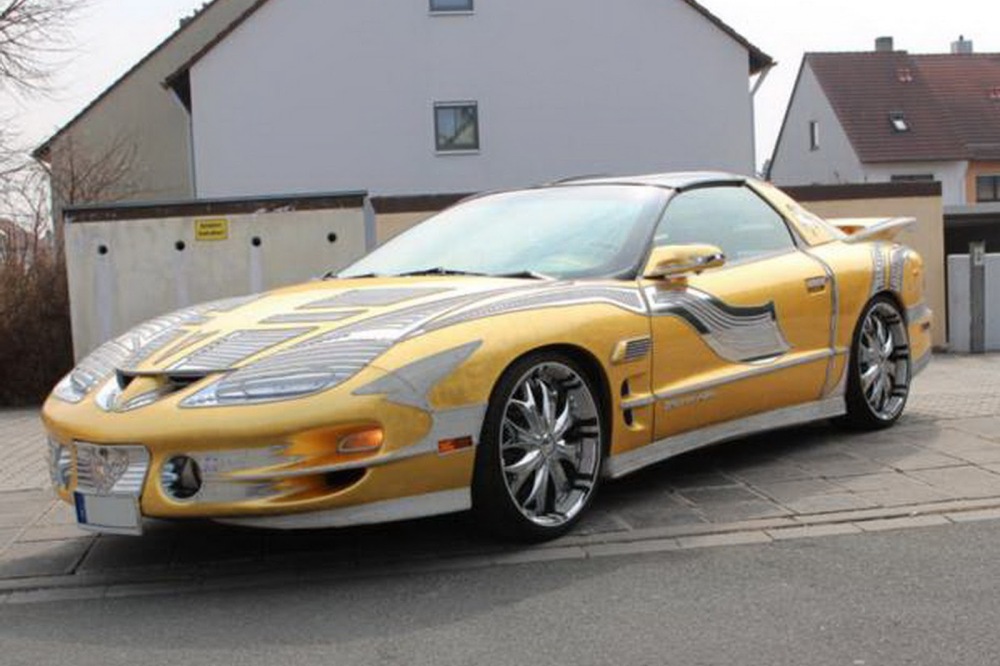 El propietario de este Pontiac Trans Am de 2002 es un amante del metal precioso, de cromo y los adornos brillantes empelados en la industria de la joyería y bisutería. All Naeemi, un iraní residente en Alemania, compró el Trans Am en Estados Unidos en 2004 por unos 38.000 euros y poco después de importarlo comenzó un largo camino de trabajo, dinero y dudoso gusto para personalizarlo por completo.