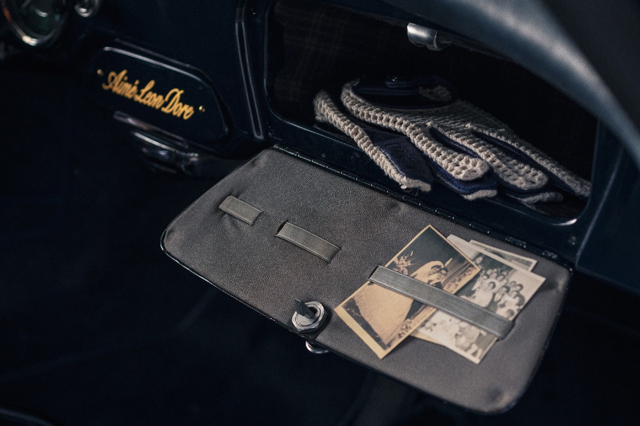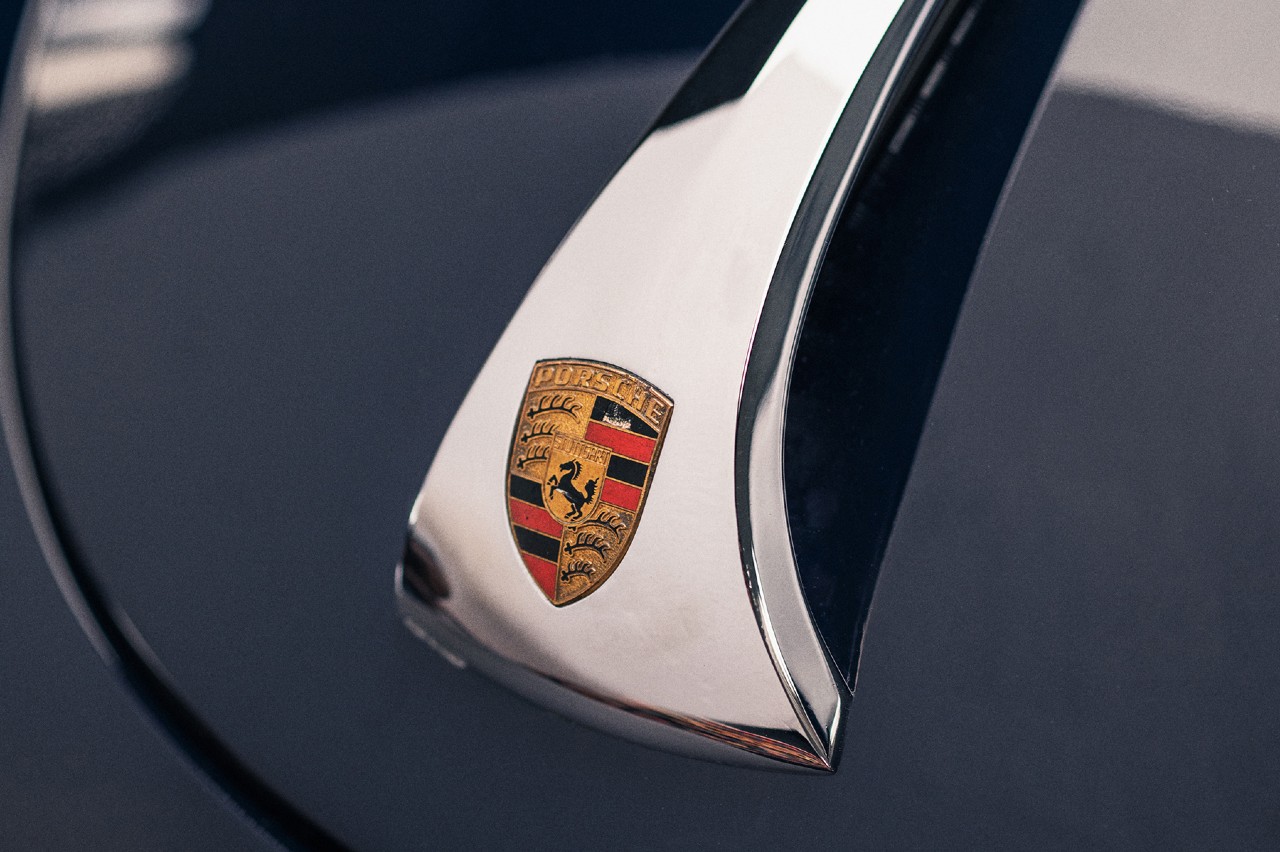Entre los elementos característicos de este 356, llaman especialmente la atención los nuevos faros auxiliares delanteros y el escudo ALD pintado a mano en pan de oro en la aleta delantera izquierda. En la parrilla del capó trasero hay tres insignias de diseño específico que recuerdan a los emblemas habituales de los clubes de automovilismo.