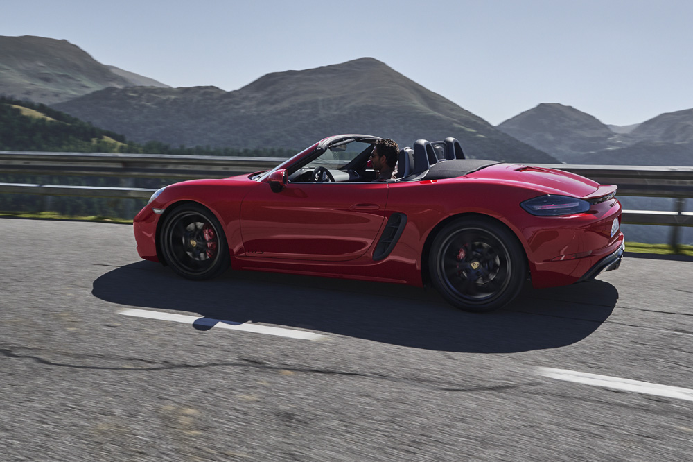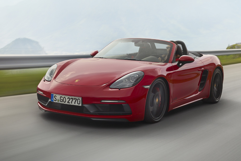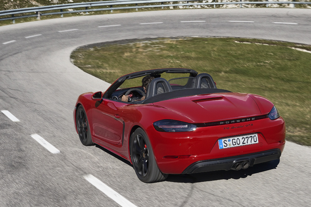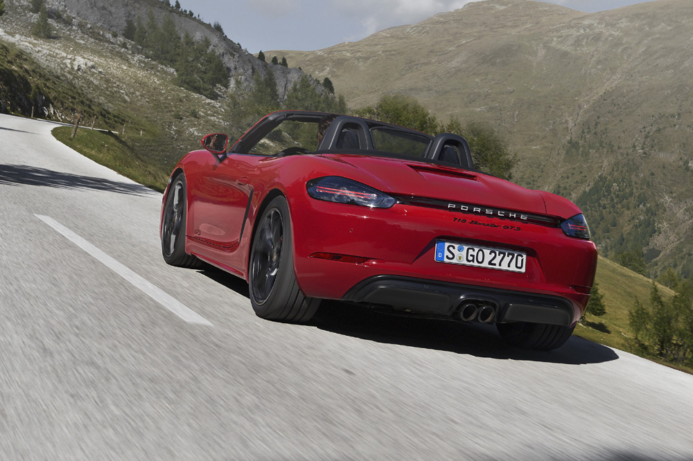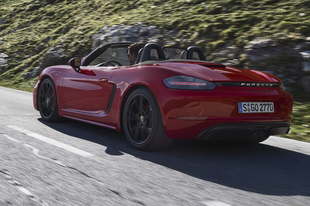 Tanto el 718 Cayman GTS como el 718 Boxster GTS presentan una imagen exterior ligeramente diferente con respecto a sus hermanos de gama. Comparados con la versión más dinámica hasta la fecha, como el Porsche 718 Boxster S (prueba), estos dos biplaza con motor central trasero cuentan con un paragolpes delantero con un faldón Sport Design, unos faros principales y pilotos oscurecidos, un difusor diferente, logotipos específicos y un juego de llantas de aleación de 20 pulgadas de diámetro acabadas en negro.