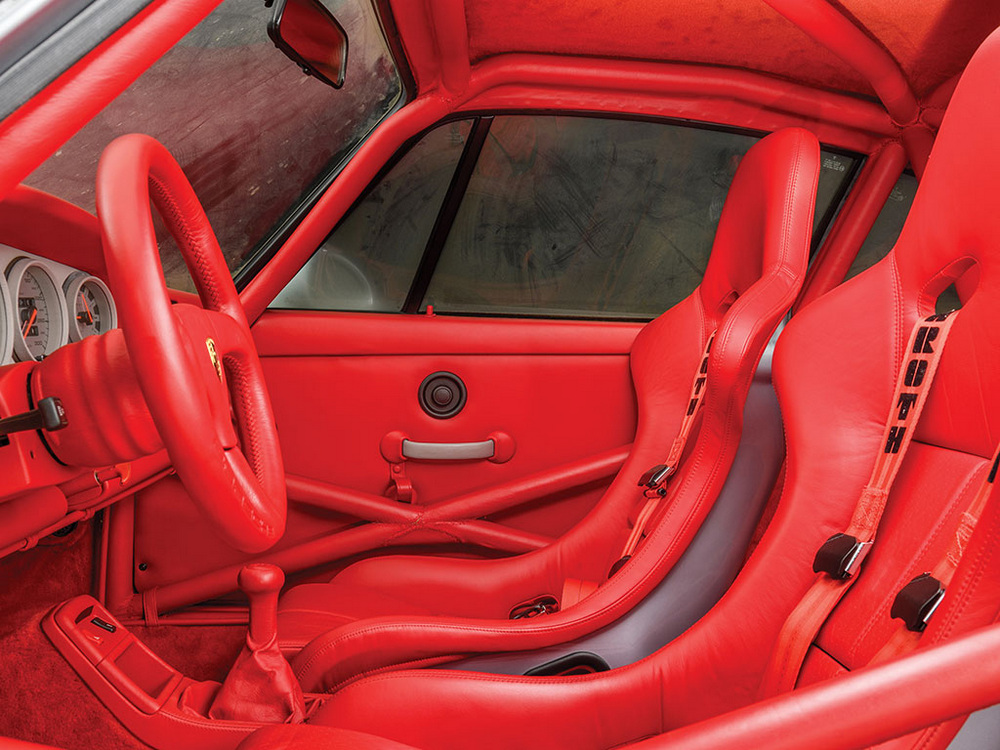 Este Porsche 911 Carrera RSR 3.8 de 1993 literalmente nunca se ha usado y de hecho y según RM Sotheby´s, todavía conserva la capa de Cosmoline original que Porsche aplicó para protegerlo tras su fabricación y hasta su entrega. Y por si no te parece lo suficientemente exclusivo, que sepas que además este ejemplar fue un pedido especial, ya que cuenta con una carrocería rematada en ‘Polar Silver’ y un habitáculo que, como puedes apreciar en la galería, está cubierto por completo en un llamativo cuero de color rojo.