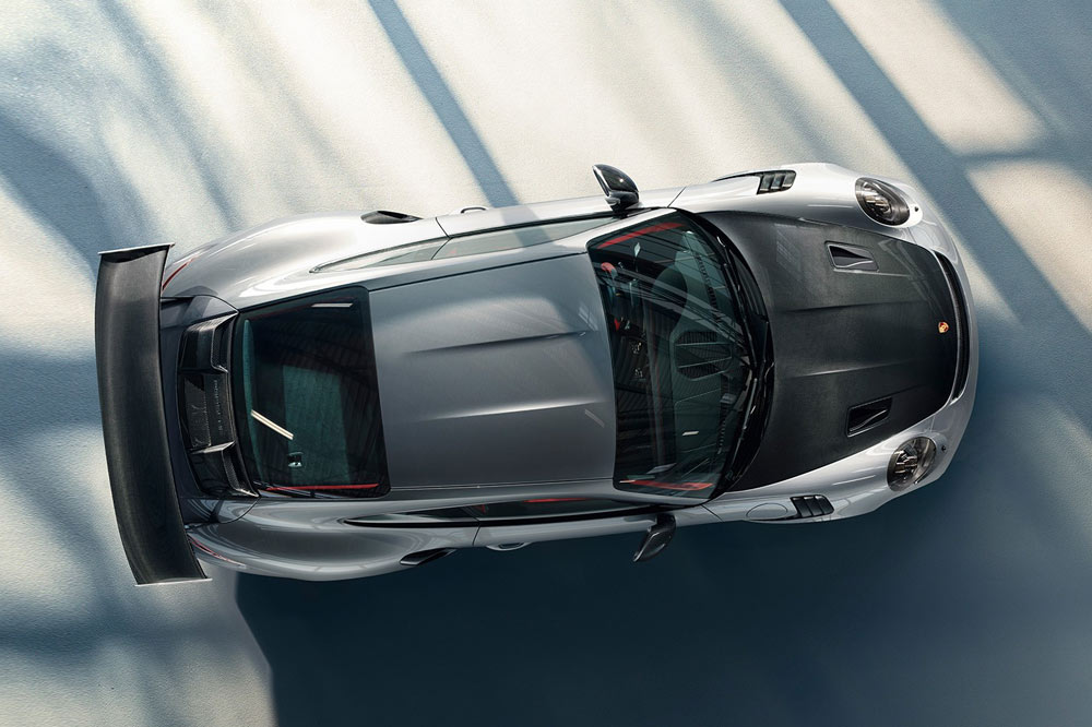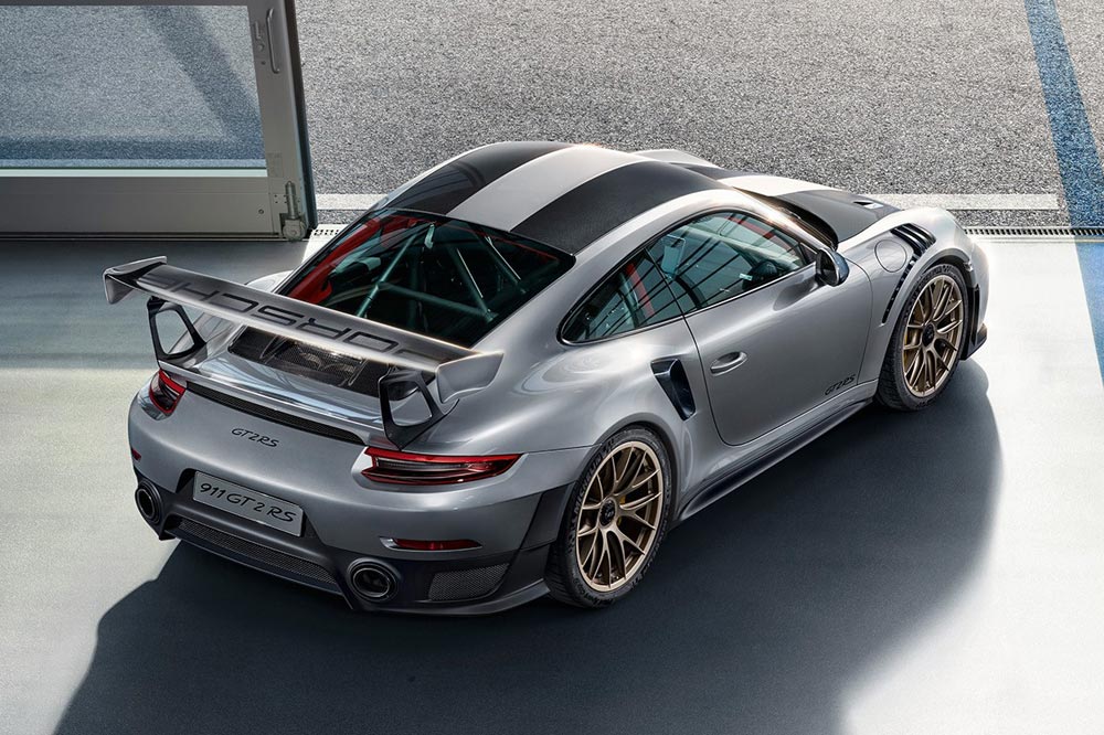Otro de los grandes trabajos que se han llevado a cabo ha sido en la aerodinámica. Además de su espectacular estampa, conseguida con un enorme alerón trasero con la palabra Porsche en la parte superior, el diseño de los paragolpes y las tomas y salidas de aire, el GT2 RS tiene un rapidísimo paso por curva. A ello acompaña el sistema PSM, especialmente calibrado y con un modo Sport puesto a punto para ser el rey de los circuitos. El capó y el techo con textura de carbono y una tira central en el mismo color del vehículo marcan la diferencia con los otros 911 de la gama. Y para detener tanta potencia, el nuevo Porsche 911 GT2 RS equipa de serie frenos cerámicos Porsche Ceramic Composite Brakes (PCCB).