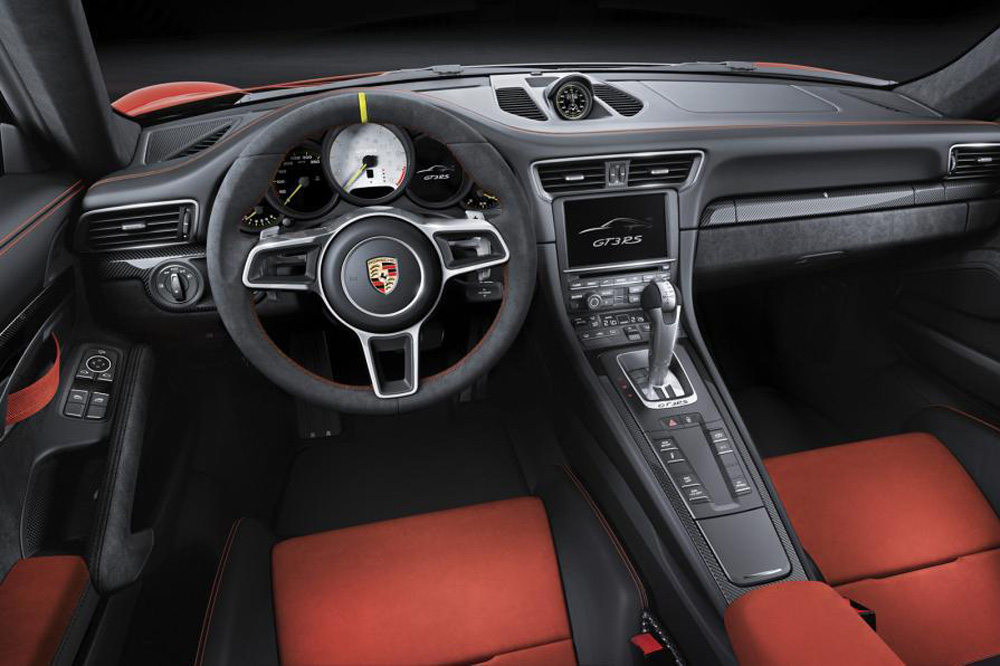 Para ayudar a reducir el peso de este modelo con respecto al del Porsche 911 GT3 convencional, incorpora un techo de magnesio, mientras que la tapa del maletero y el capó están fabricados en plástico reforzado con fibra de carbono. ¿Y cuánto ha bajado exactamente? 10 kilogramos, hasta situarse en 1.420 kilogramos.
