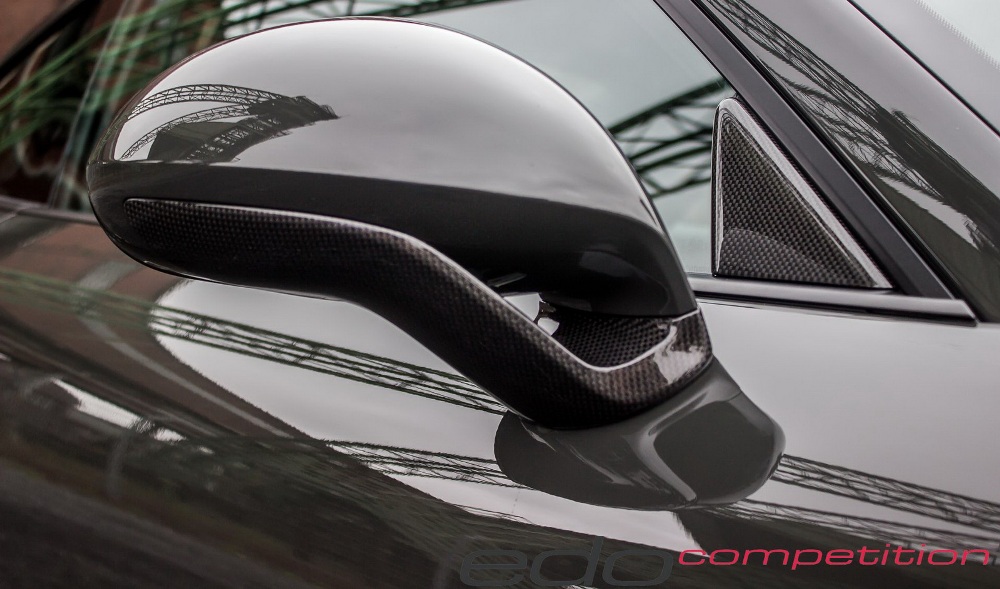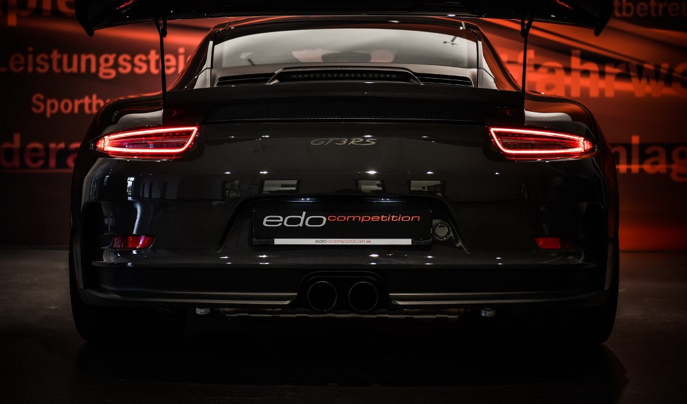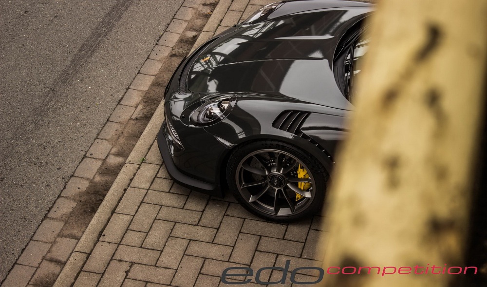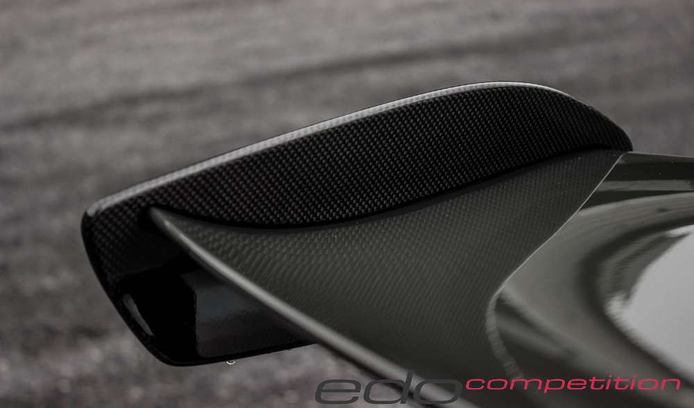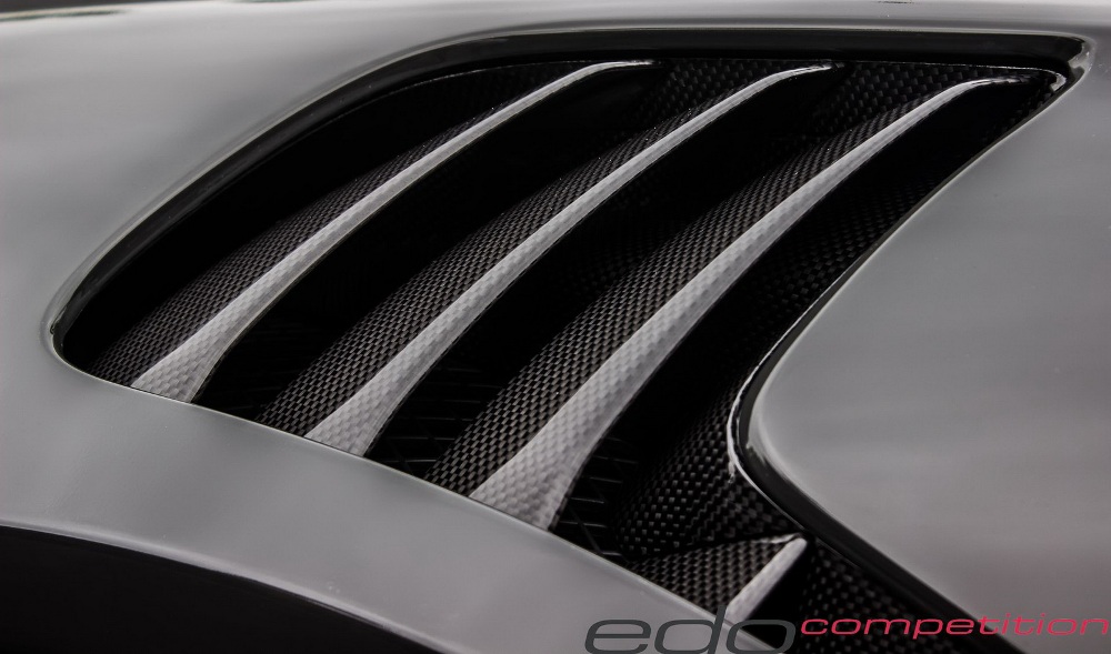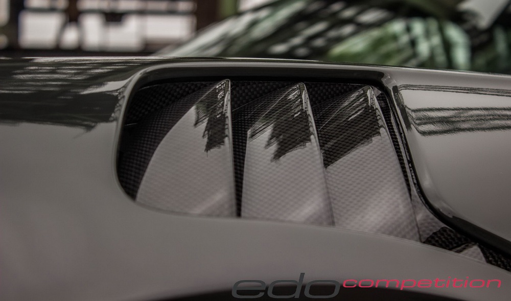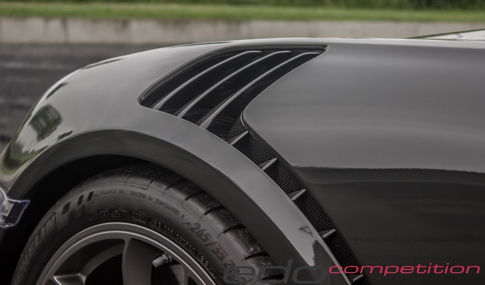 Edo Competition ha instalado en el Porsche 911 GT3 RS una serie de componentes para canalizar el aire de forma más fácil, reducir las turbulencias generadas y crear mayor carga aerodinámica. Por ello, se han instalado nuevos guardabarros, tomas de aire laterales, nuevas aletas, otras carcasas de los espejos retrovisores y entradas de aire sobre la cubierta del motor, todo ello en fibra de carbono.