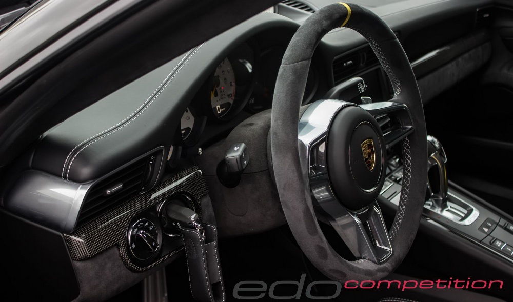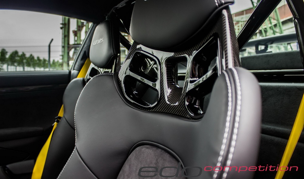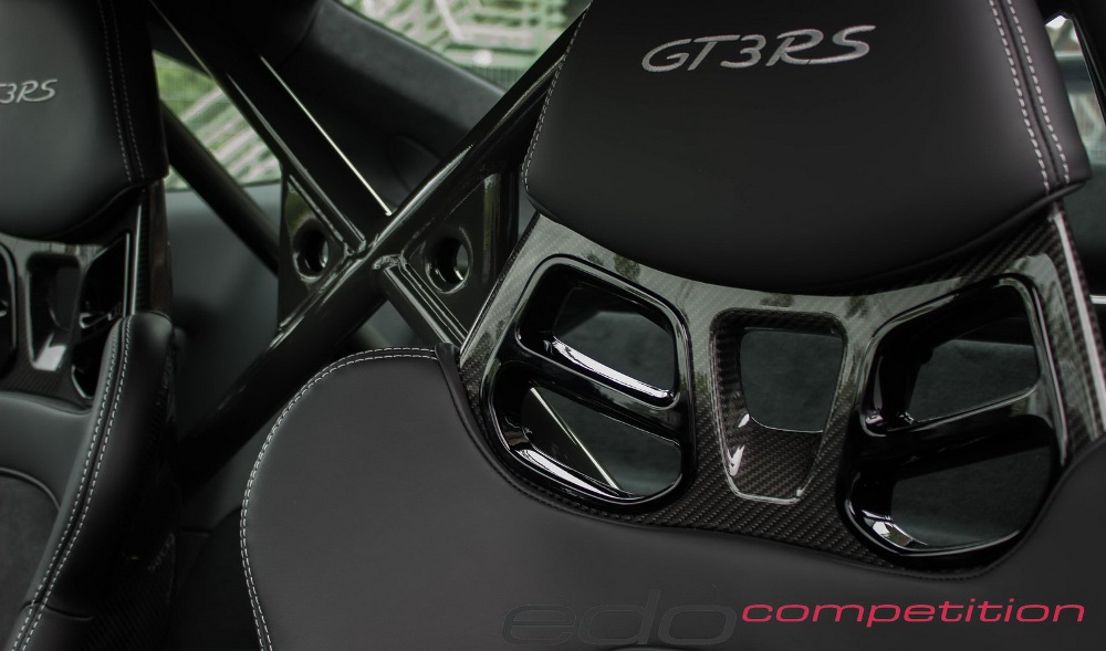 El Porsche 911 GT3 RS es un deportivo orientado a los circuitos pero legal para su uso en la vía pública. Equipa un motor bóxer de 3.8 litros y aspiración natural que entrega 500 CV, cuenta con suspensiones mejoradas, frenos más potentes y barras antivuelco para incrementar la seguridad. Y es en el interior donde Edo Competition ha incluido una serie de inserciones en fibra de carbono visible que mejoran el aspecto drásticamente.